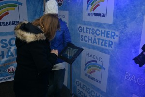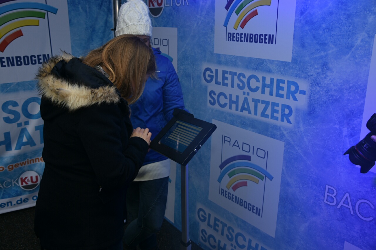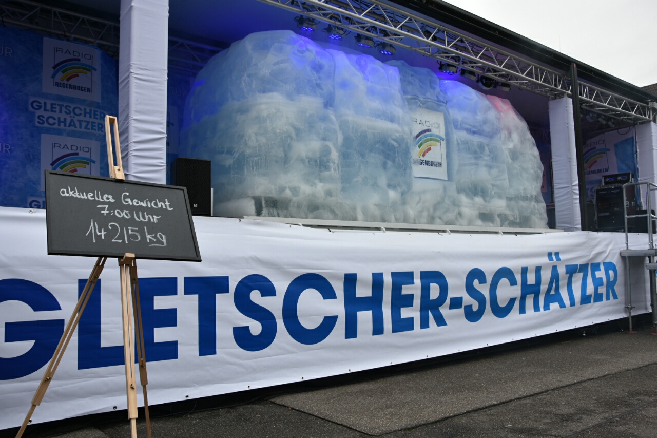 So sind Sie als Gletscher-Schätzer dabei: Machen Sie sich zwischen 12.00 und 15.00 Uhr vor Ort an einer der 20 Stationen ein genaues Bild von dem Eis-Ungetüm und legen Sie sich dann fest: Wie schwer wird der Radio Regenbogen Gletscher am nächsten Morgen um 7.00 Uhr sein, wenn die Digital-Waage sein genaues Gewicht misst? Ihren Tipp können Sie direkt vor Ort oder im Internet auf regenbogen.de abgeben.