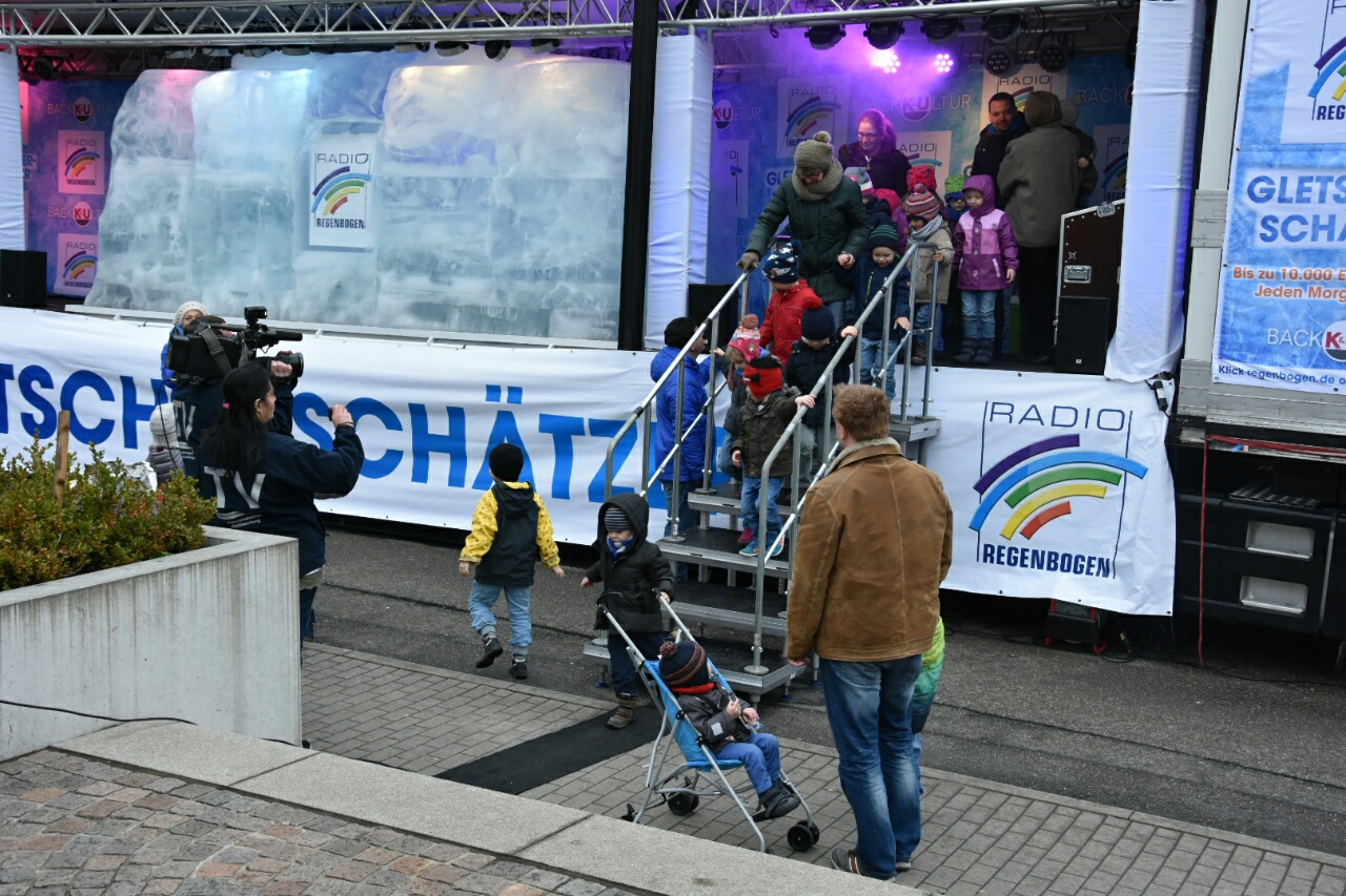 Er ist der Star in den kommenden Wochen, über den ganz Baden und die Pfalz sprechen wird: Der Radio Regenbogen Gletscher. Ganz unfein: Man wird sich über sein Gewicht unterhalten! Mit einer heiß-kalten Show tourt das eisige Kunstwerk ab nächsten Mittwoch [10.02.2016] durch die Regenbogen Welt, thront wie eine Diva auf der Radio Regenbogen Show-Bühne, das Highlight einer extravaganten Show aus Licht, den heißesten Sounds und den kniffligsten Quizfragen für das Publikum.