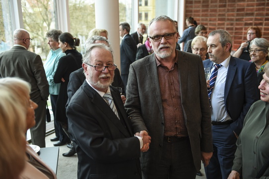 TheaterfahrtWährend der ersten Pause der Vorstellung Die Fledermaus am 1. April bedankte sich der geschäftsführende Intendant Dr. Ralf Klöter im Rahmen eines Sektempfangs bei Dieter Degreif für sein außerordentliches und bemerkenswertes Engagement und den unermüdlichen Tatendrang, den Dieter Degreif seit nunmehr 50 Jahren mit der Organisation unzähliger Theaterfahrten an den Tag legt.