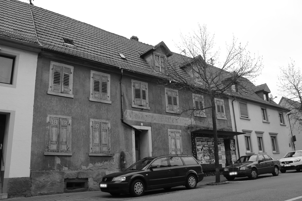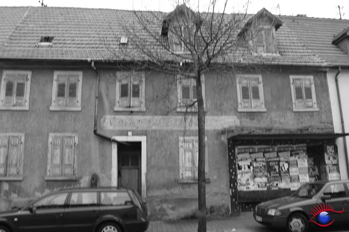 Die ehemalige Metzgerei Fritz Lamade in der Schwetzinger Straße. Soweit ich mich zurückerinnern kann war dieses Haus in der Schwetzingerstrasse in Wiesloch immer leer gestanden. Die einzige Nutzung bestand darin, dass das ehemalige Schaufenster der Metzgerei eine äußerst beliebte Plakatwand für wildes Plakatieren war.
