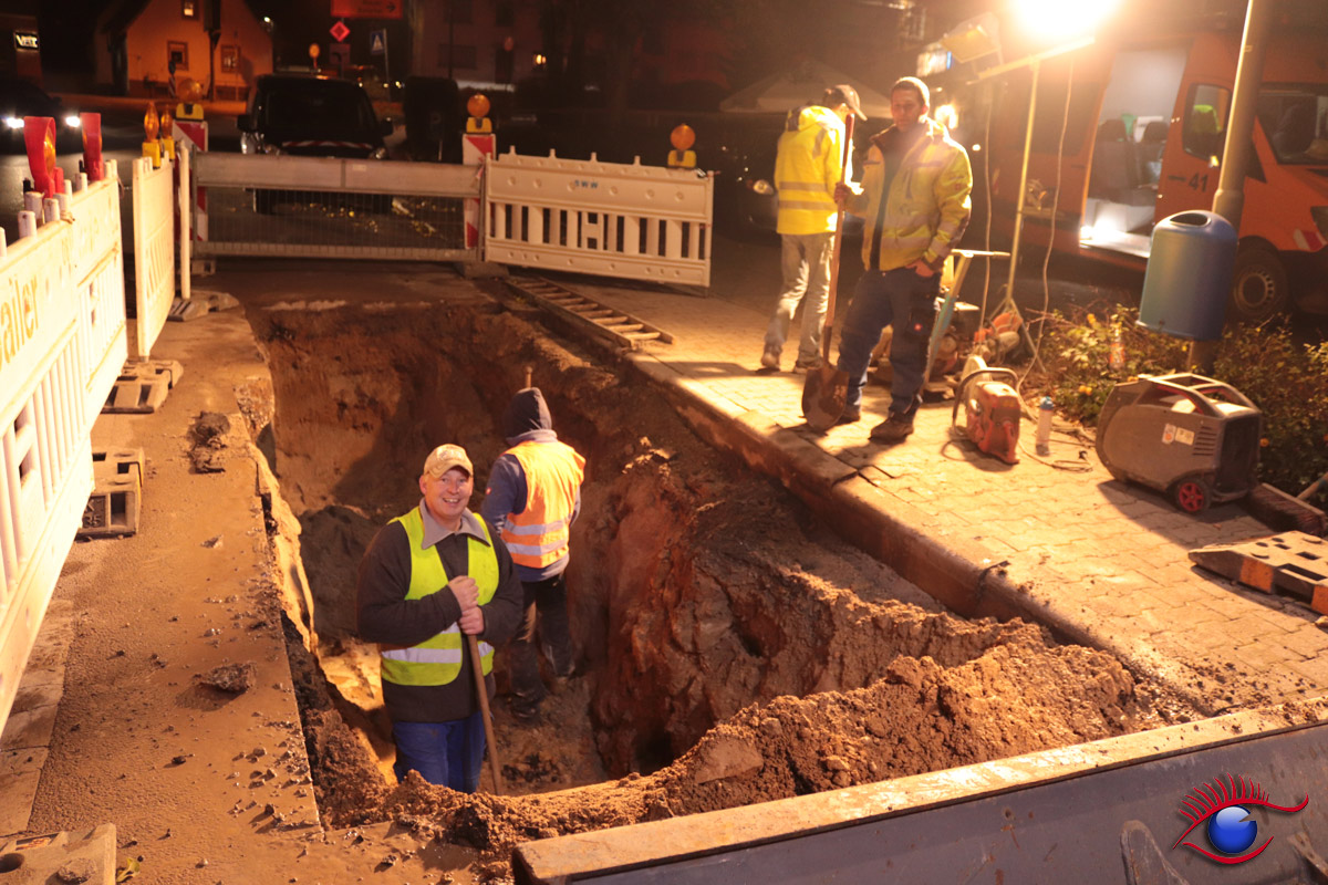 Alle Jahre wieder könnte man nun wieder sagen. Erst letztes Jahr ereignete sich ein Wasserrohrbruch an fast der gleichen Stelle. Stand ca. 21 Uhr – das Problem wurde noch nicht gefunden und die arbeiten dauern wohl die ganze Nacht an.