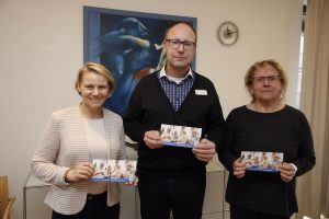 Bürgermeisterin Christiane Staab (li.) hofft mit Thorsten Antritter und Rita Bün vom Pflegezentrum Astor-Stift auf viele schöne Begegnungen für Seniorinnen und Senioren am Donnerstag
