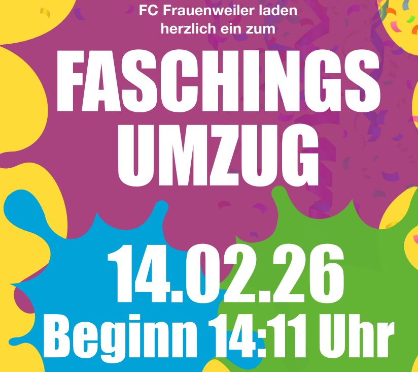 Der größte Faschingsumzug Wieslochs findet am Freitag, 14. Februar 2026 wieder in Frauenweiler statt. Es werden sich rund 30 Gruppen mit bunten Wägen durch den Dorfkern schlängeln. Fantasievolle Kostüme sorgen für ausgelassene Faschingsstimmung.