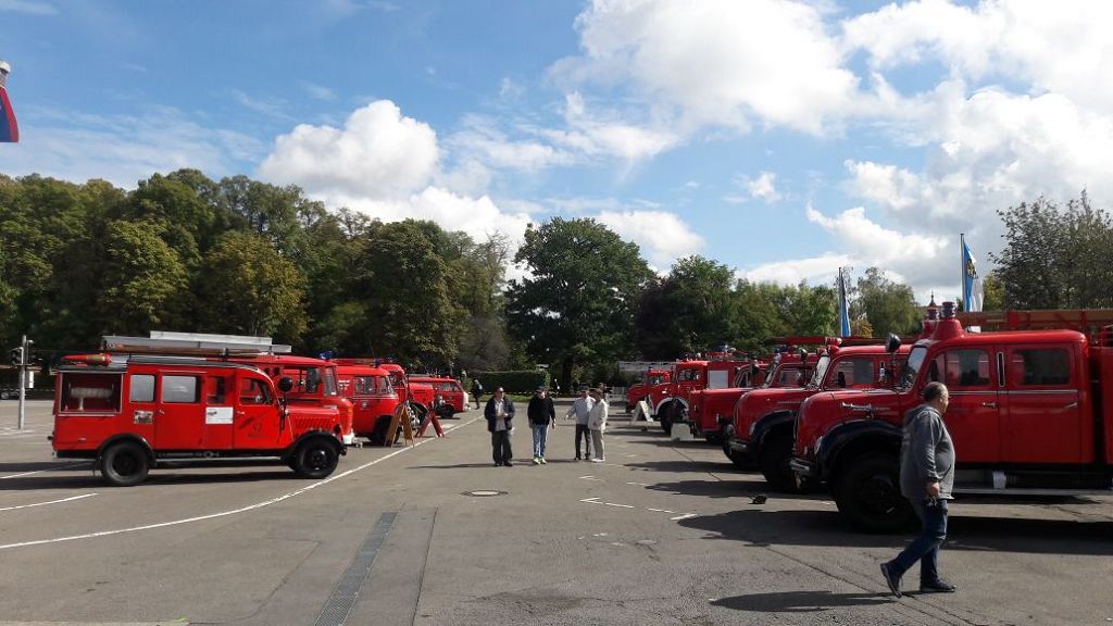 Zahlreiche Feuerwehr-oldtimer strahlten mit der Sonne um die Wette