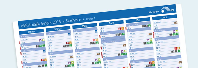 AVR Kommunal verbessert Kundenservice – Neuer Abfallkalender ersetzt Serviceheft und Internetauftritt erscheint mit neuem Design Vereinfachung, klare und verständliche Darstellung, verbesserter Kundenservice – das ist die Intention der AVR Kommunal GmbH. Pünktlich zum Beginn der Verteilung ab dem 8. Dezember an alle Haushalte im Rhein-Neckar-Kreis präsentiert die AVR Kommunal ihr neuestes Medium. Der Abfallkalender ersetzt das langjährig bekannte Serviceheft. Zeitgleich präsentiert das Unternehmen seine neue Homepage, die mit einer neuen, übersichtlicheren Bedienerführung zahlreiche Vorteile mit sich bringt.