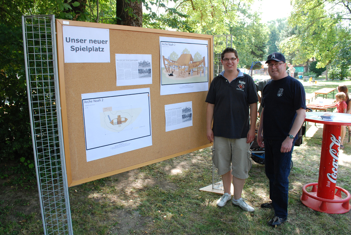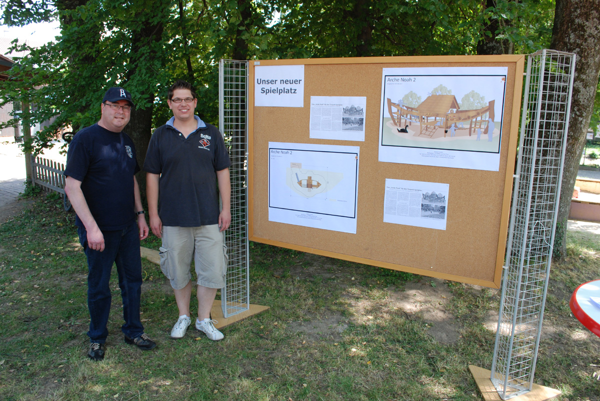 Der Vorstand hat sich umgehört, zahlreiche Angebote eingeholt und sich dann für ein sehr stabiles Konstrukt aus Robinien Holz entschieden, das alle Sicherheits-Prüfungen bestanden hat. Die Arche soll Mitten im Park ihren Platz finden, dort wo jetzt noch die Wippe steht. Perfek