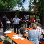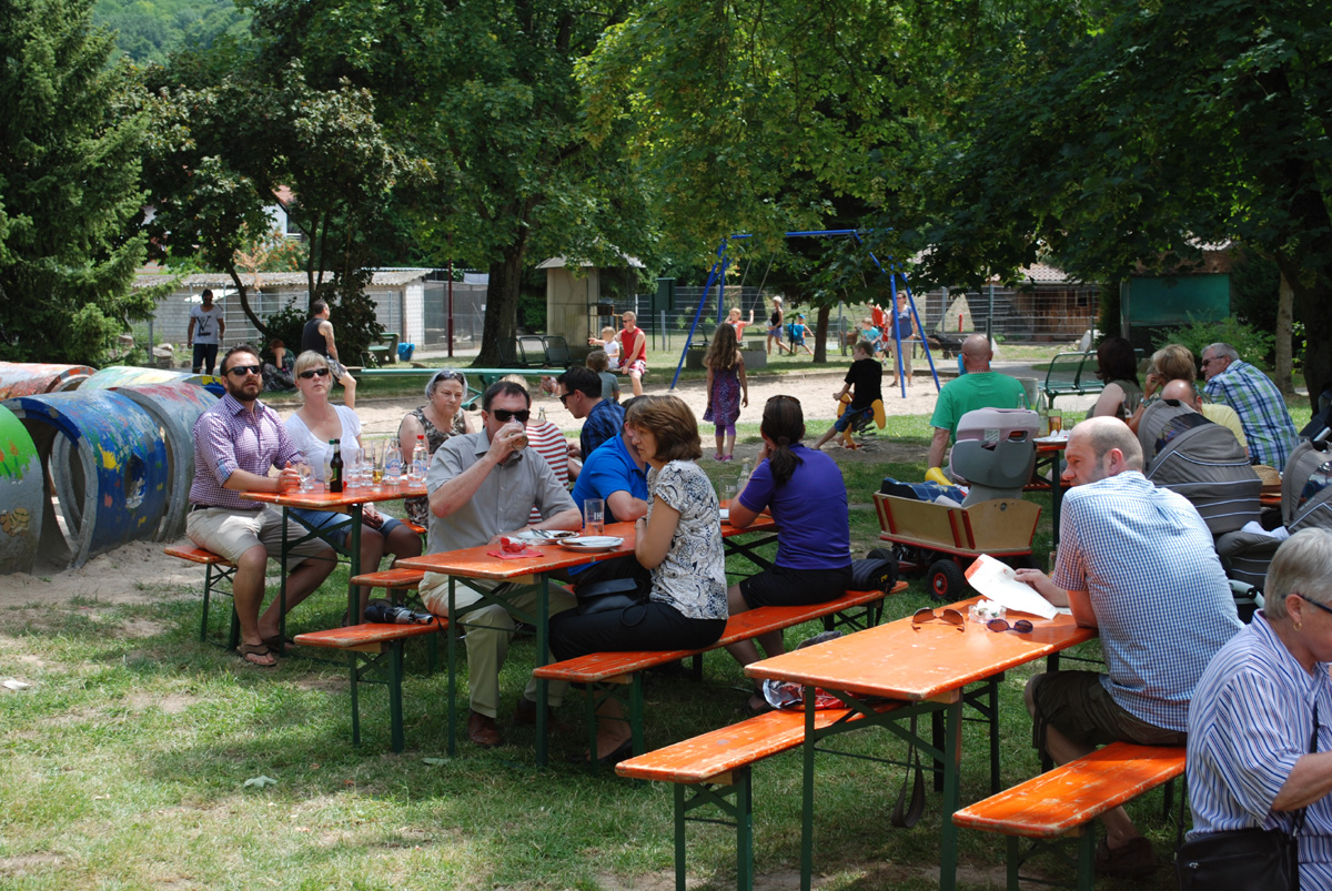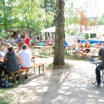 BGM Frank Borghammer wies bei seiner Bachufer Fest 2014 Eröffnungs-Rede auf die Info- Stände des Hochwasser Schutz-Verbandes hin, der die Absicherung des Baches überwacht und auf den Wert dieses Vorhabens. Besonders betonte er aber die vorbildliche Zusammenarbeit zwischen den Freunden des Tierparkes und der Stadt Rauenberg und wie gerne er jetzt in den Park kommt. Noch vor einigen Jahren war der Tierpark von der Schließung bedroht. Jetzt verwandelt er sich mehr und mehr in eine Wohlfühl Oase für Mensch und Tier.