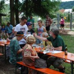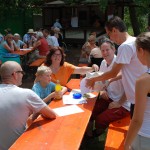 Das Wetter hielt. Erst als alle gegangen und die sichtbarsten egleit-Erscheinungen der Feier weggeräumt waren, begann der angekündigte Regen, begleitet von Gewitter. Die Tiere hat’s gefreut. So viele lustige Besucher sind für die Tiere anstrengend, zudem war es mit 33-36°C echt schweißtreibend – besonders, wenn die Wolle noch drauf ist.