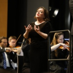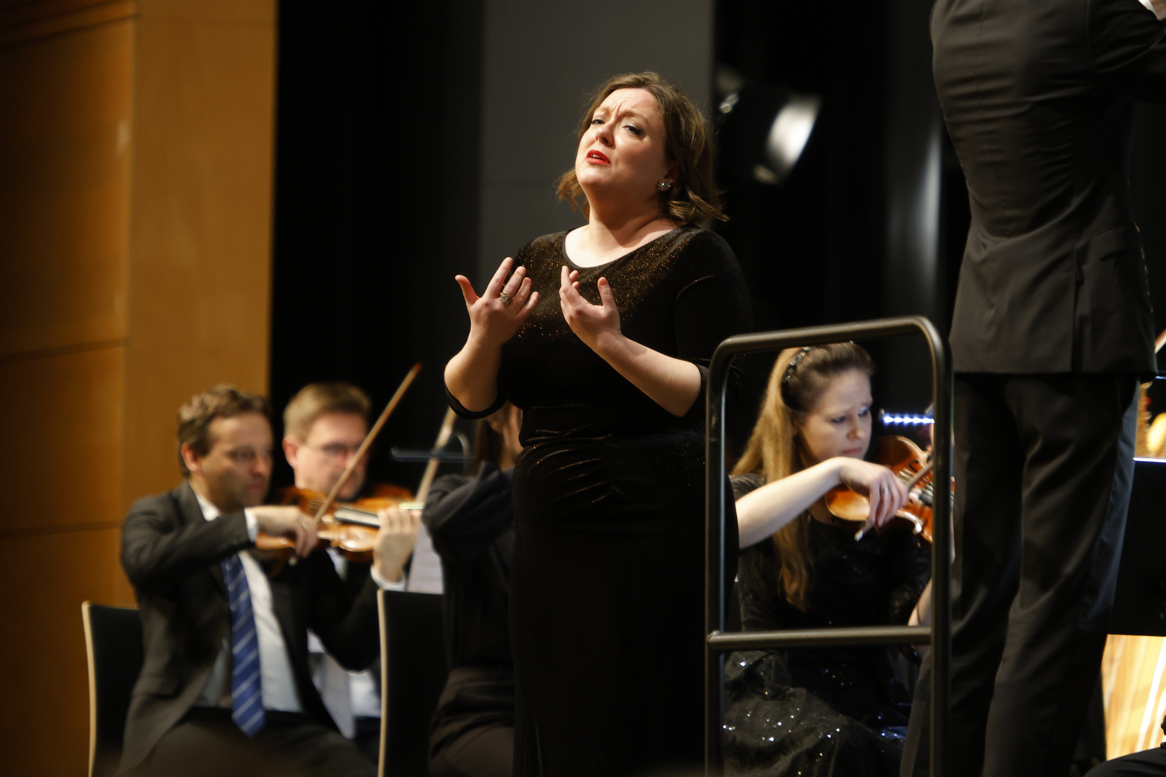 Ganz nebenbei leitet Lecon noch das Publikum zum Mitklatschen an der richtigen Stelle an – und erlaubt sich das Späßchen, es einmal auf die falsche Fährte zu locken. Ein gut hörbares und treffendes „Wow“ erntet die Solistin am Ende der Arie aus Offenbachs Oper „Hoffmanns Erzählungen“ für das finale und titelgebende „C’est l’amour …“. Joseph Hellmesbergers „Danse diabolique“ ist wahrlich ein dramatischer Ritt, romantisch und poetisch wird die Stimmung bei Eduard Künnekes Lied „Der strahlende Mond“.