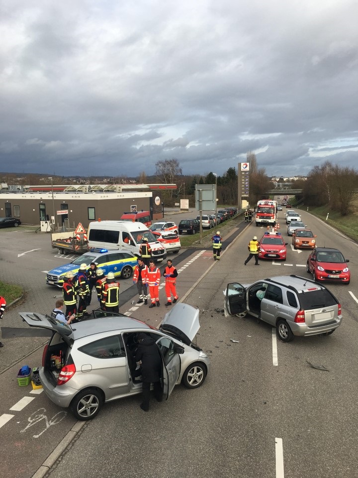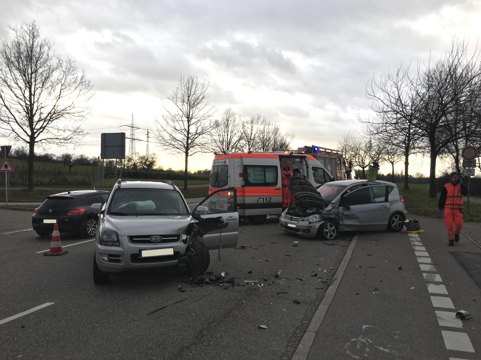 Am Nachmittag ereignete sich ein Verkehrsunfall auf der L594 in Fahrtrichtung Frauenweiler. Auf Höhe der dortigen Tankstelle prallten zwei Fahrzeuge im Kreuzungsbereich zusammen.