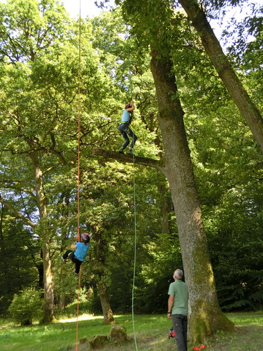 Das Kreisforstamt im Rhein-Neckar-Kreis lädt ein zum Balancieren auf der Slackline und zum gesicherten Hochklettern an einem Baumstamm. Konzentration und eine ruhige Hand brauchen alle, die beim Flying Arrows Feldbogenclub einmal selbst einen Bogen spannen und den Pfeil ins Innere der Zielscheibe bringen wollen.