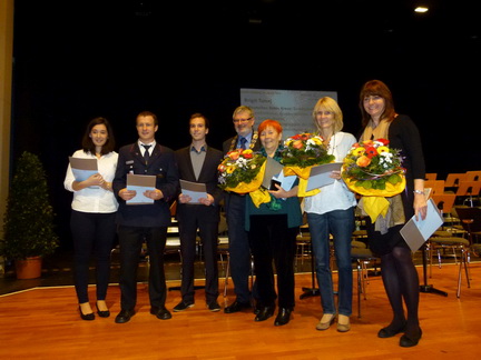 DRK-Mitglied Brigit Tunaj, 2.v.l., wurde gemeinsam mit den anderen abgebildeten Personen für ihr überdurchschnittliches ehrenamtliches Engagement geehrt.