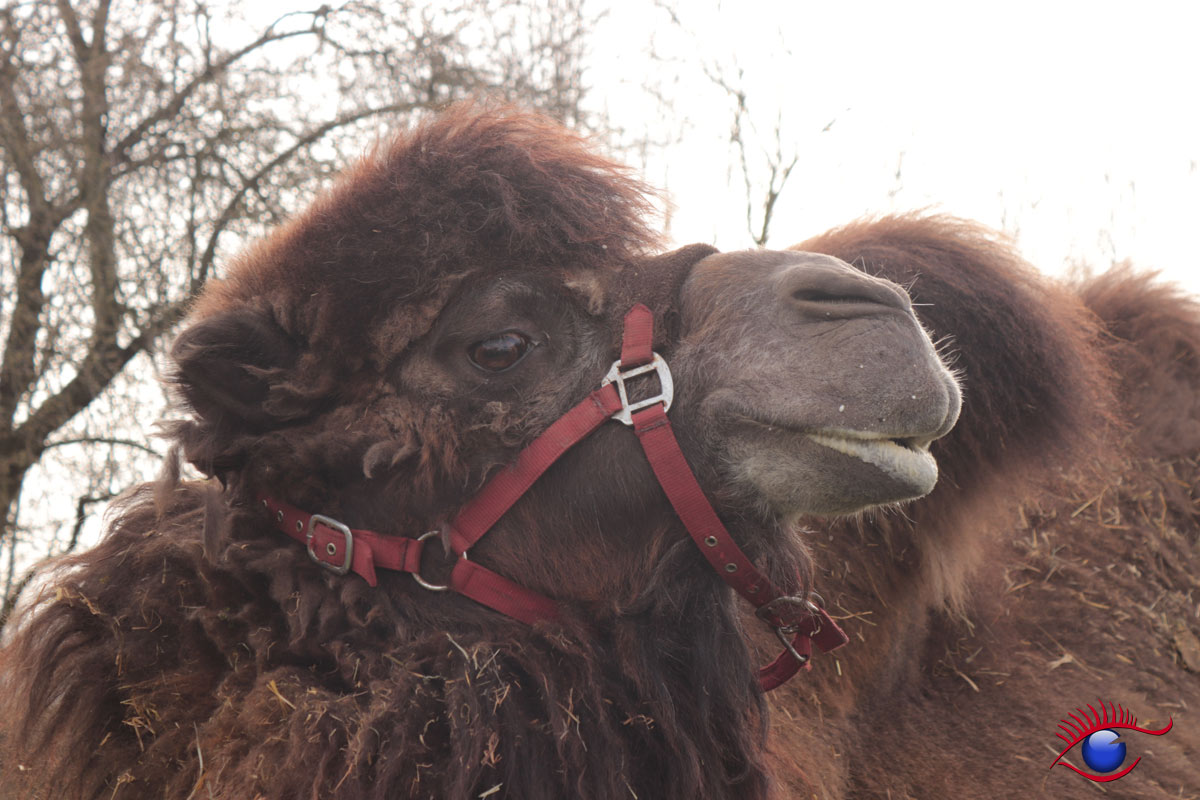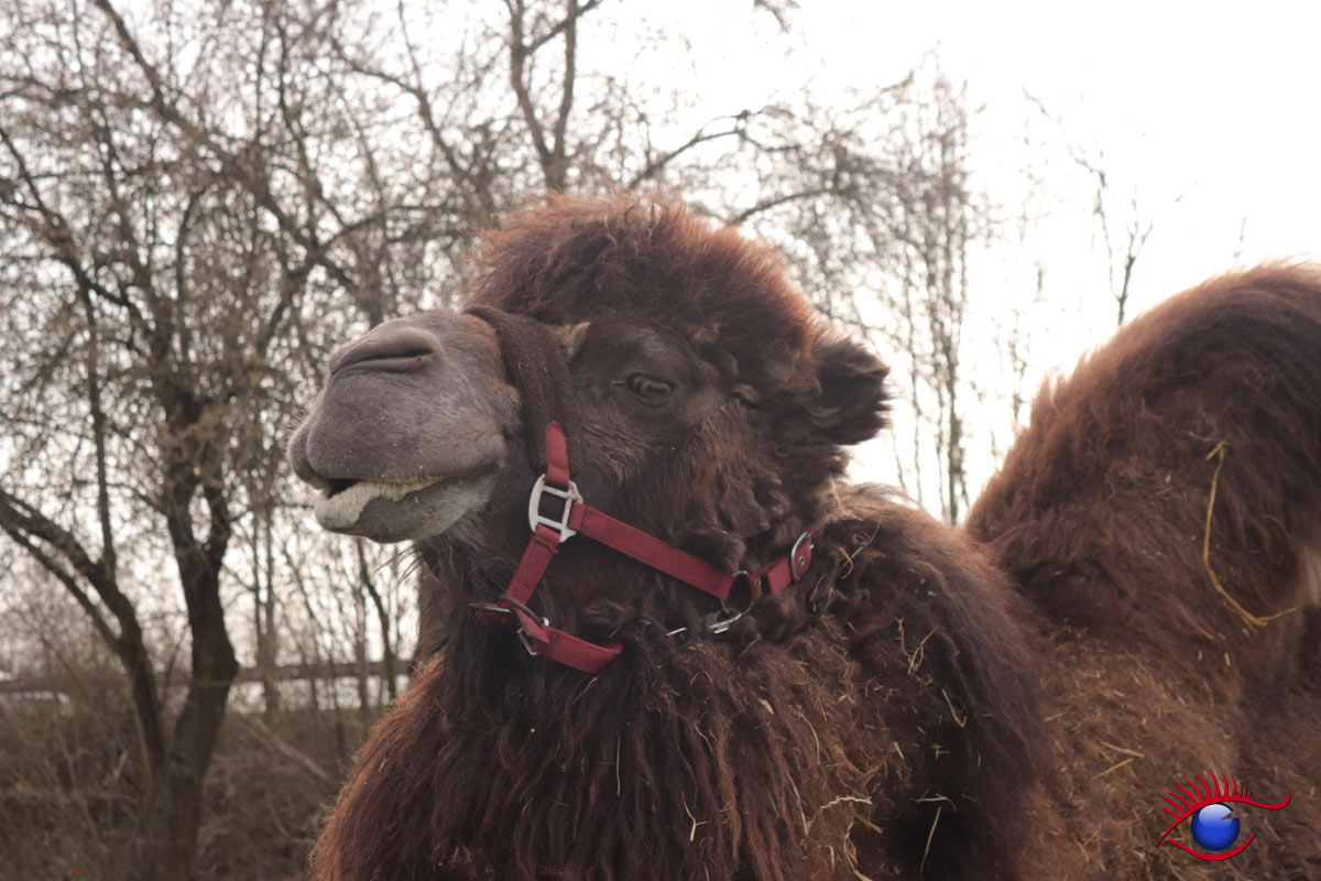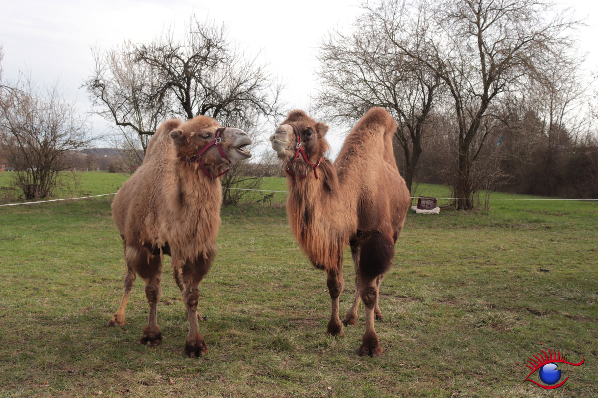Zabo ist ein ganz lieber Kerle, wie ich selbst heute festgestellt habe. Ein wirklich imposantes Tier. Und er scheint schwer verliebt zu sein. Seine Herzensdame und sein Nachwuchs waren zum Zeitpunkt meines Kurzbesuches von ihm getrennt. Er mit zwei anderen Kamelen auf der Wiese und seine Family im benachbarten Zelt. Zabo wollte so gerne zu den beiden, blieb aber brav im umzäunten Aussenbereich.
