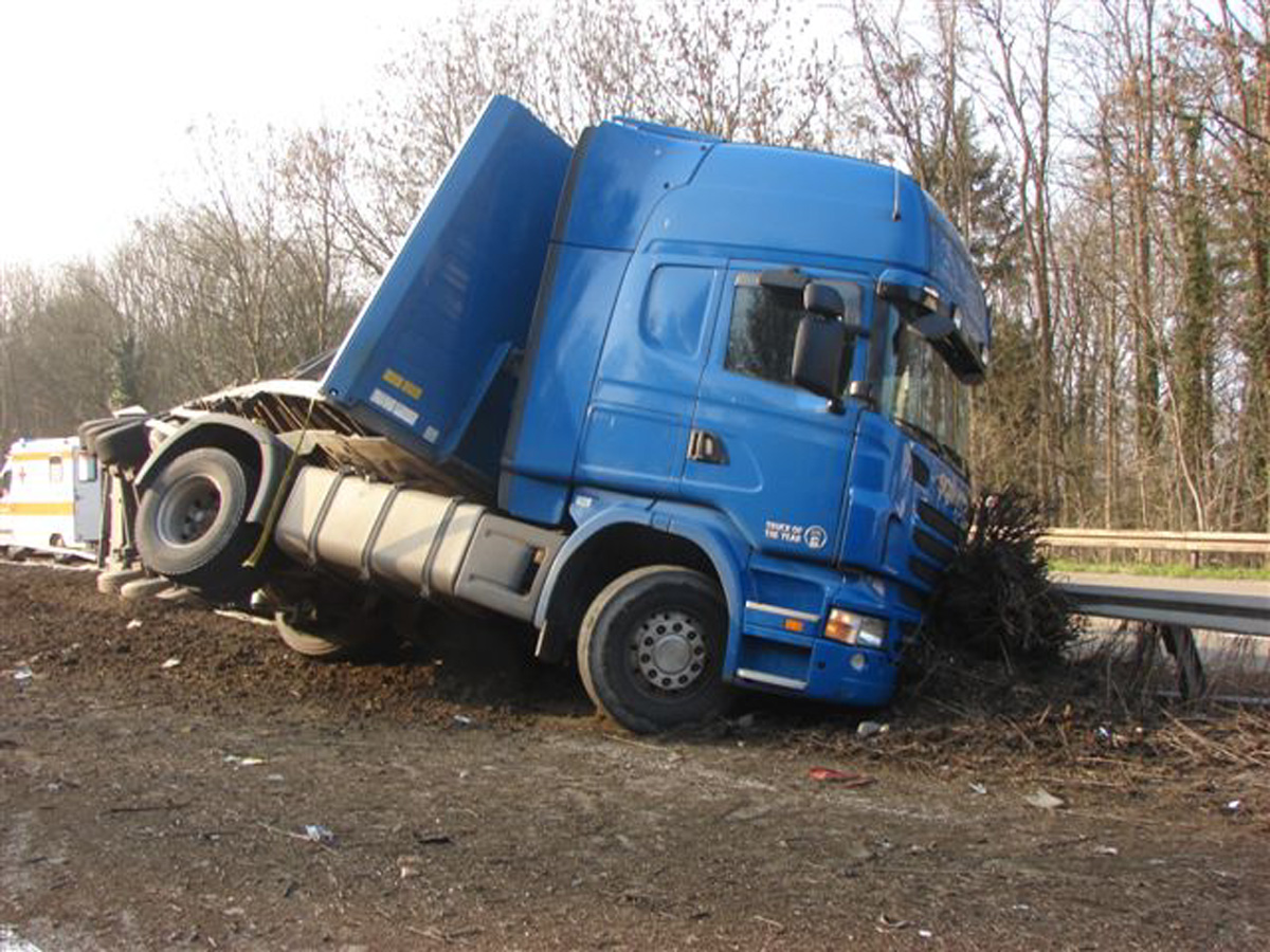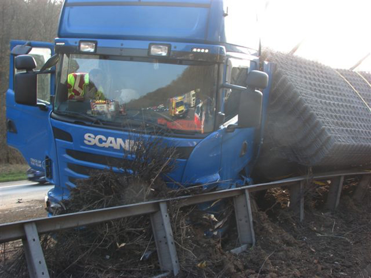 Ein Sattelzug geriet ins Schleudern und brach durch die Mittelleitplanke.