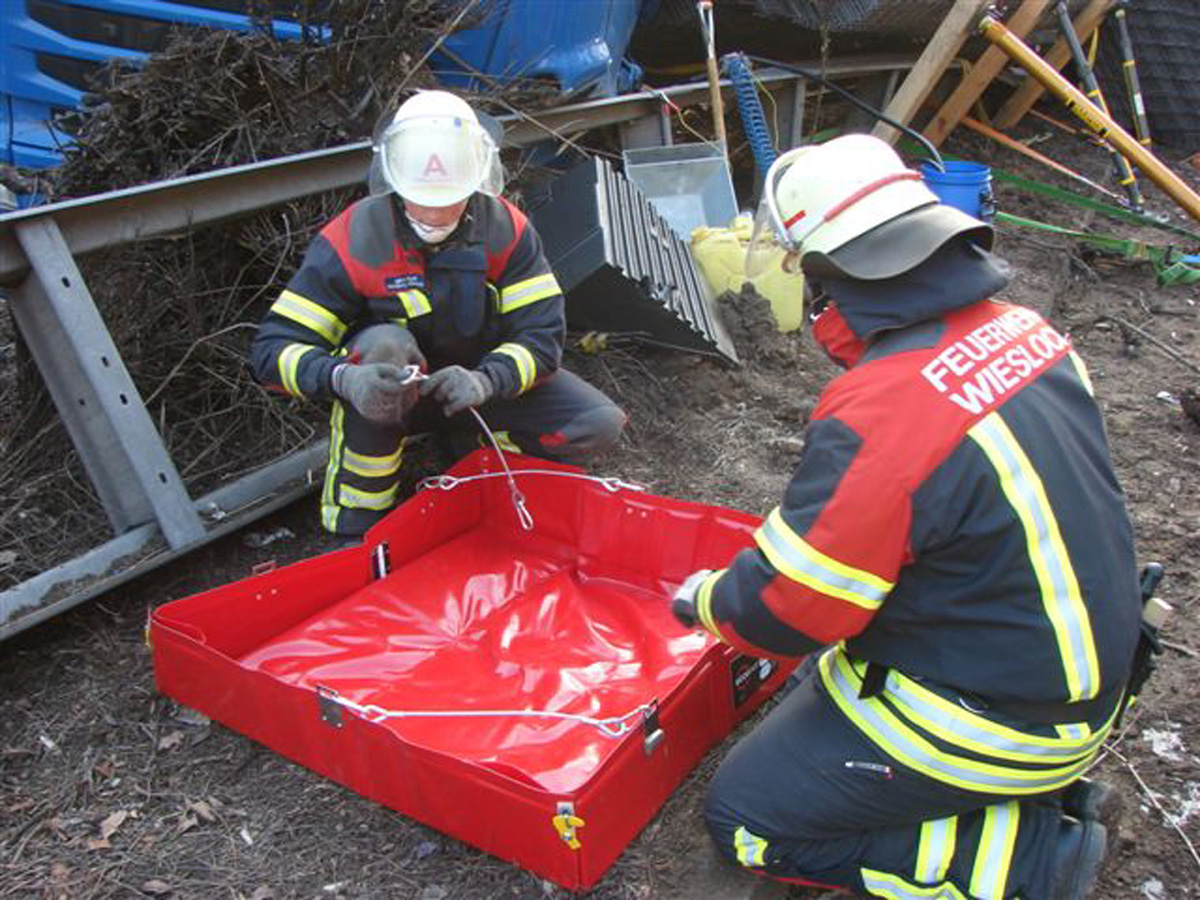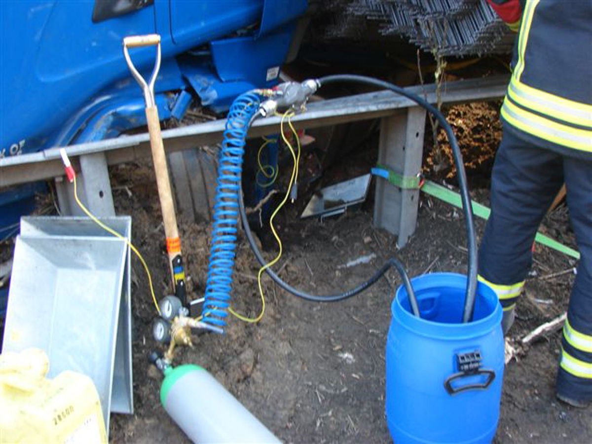 Mit Spanngurten wurde die Ladung (Baustahlmatten) gesichert und auslaufende Betriebsstoffe gebunden bzw. aufgefangen.