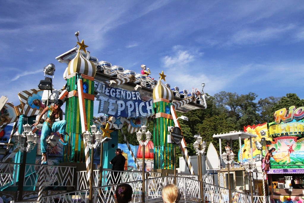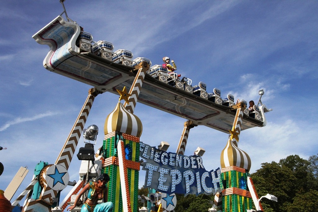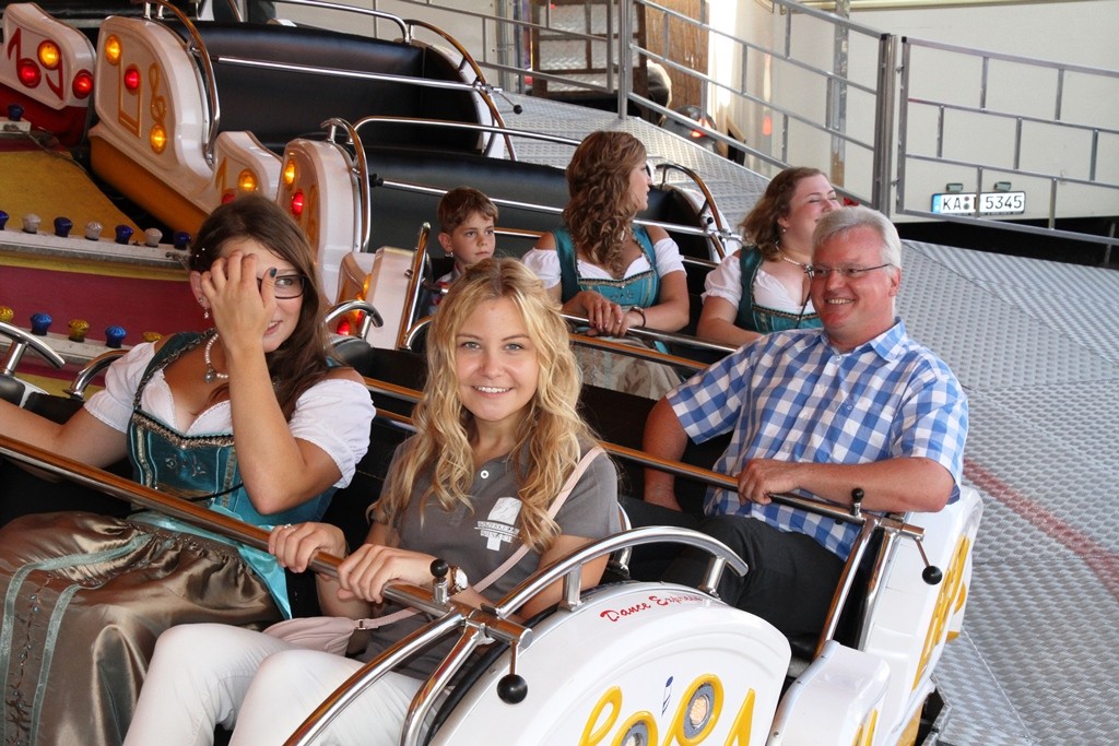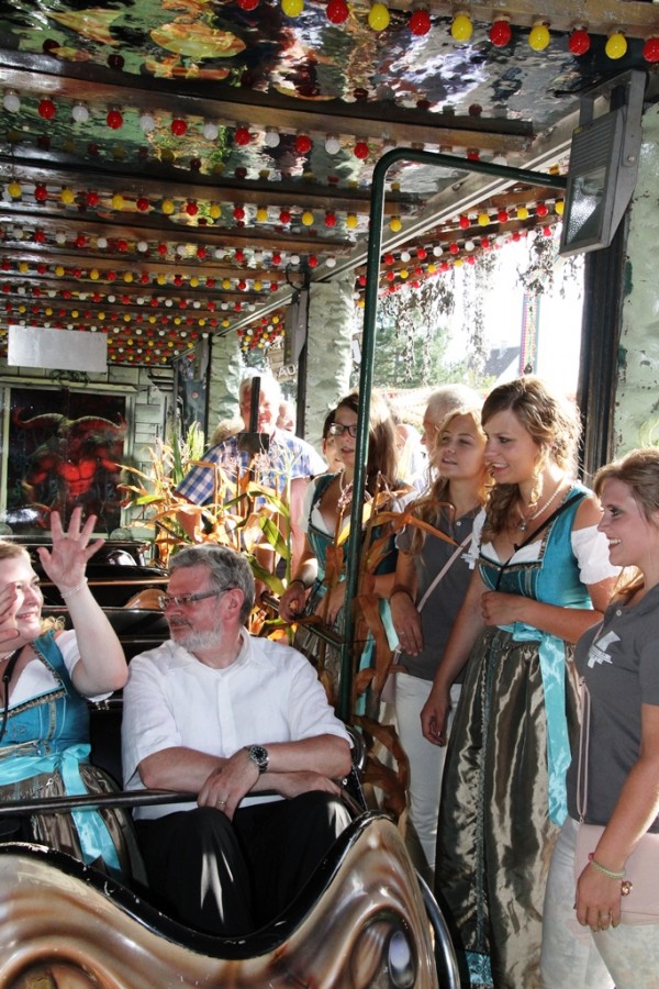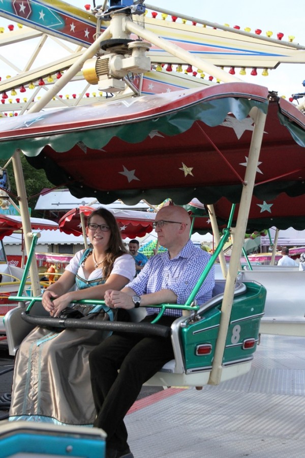 Gegen 19.00 Uhr zog man, allen voran der Fanfarenzug, in die Eiswein – Halle, die wie bereits angekündigt, völlig neu ausgerichtet ist. Festwirt HAPE Küffner lässt sich immer etwas neues einfallen. Ebenso sorgt der Chef des Vergnügungsparks Willi Lowinger immer wieder für eine Überraschung in den Fahrgeschäften, dieses Jahr ein „Fliegender Teppich“!