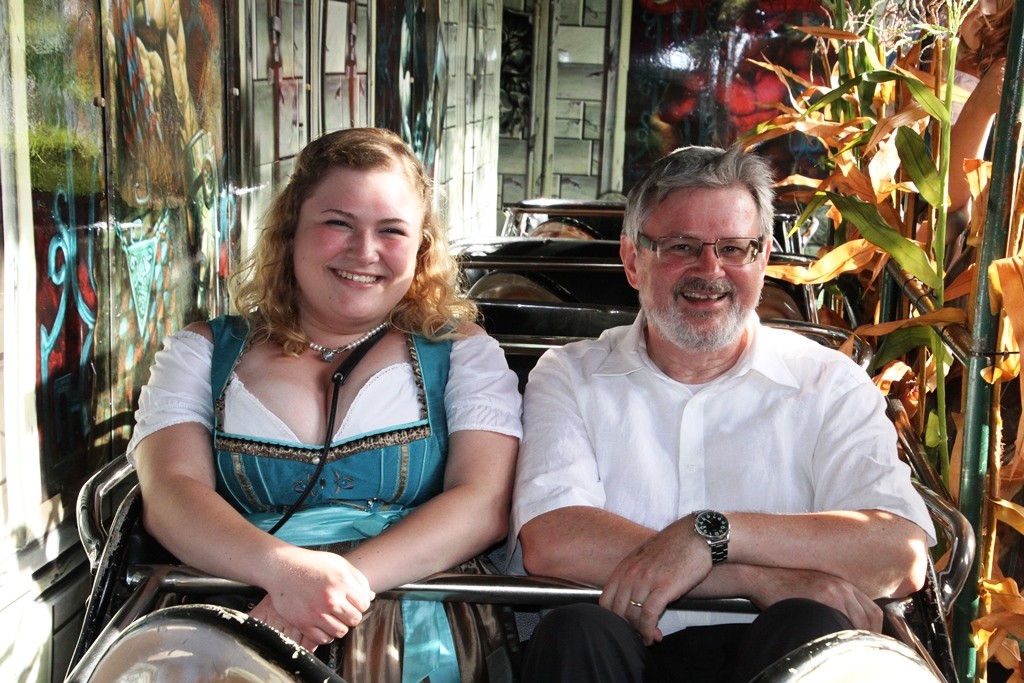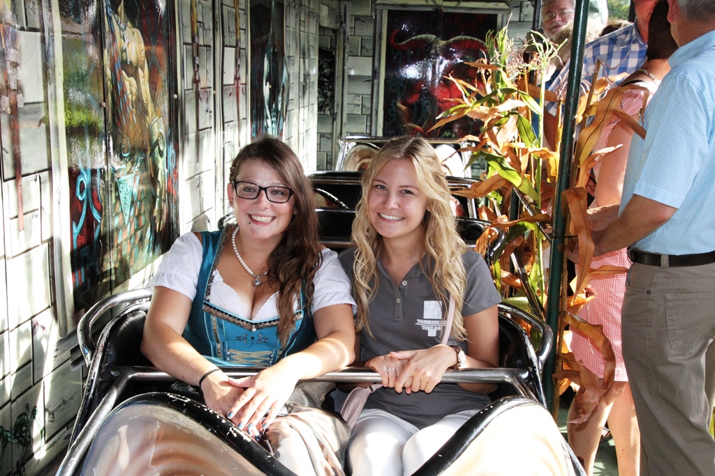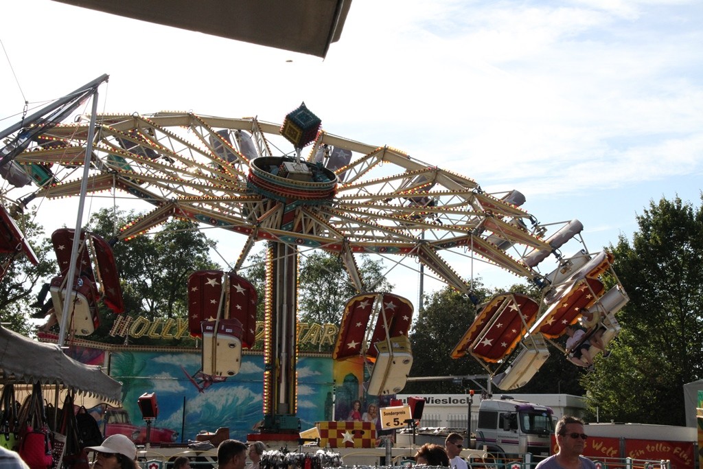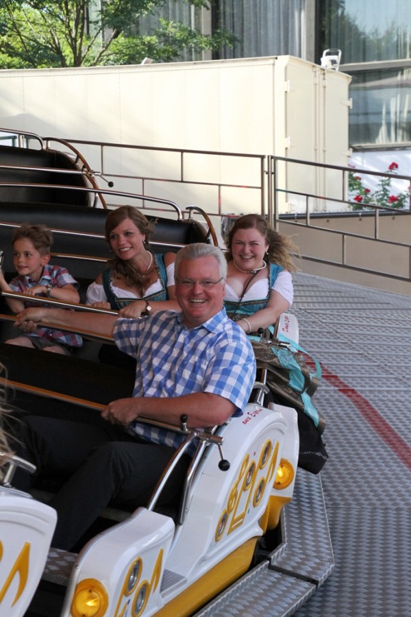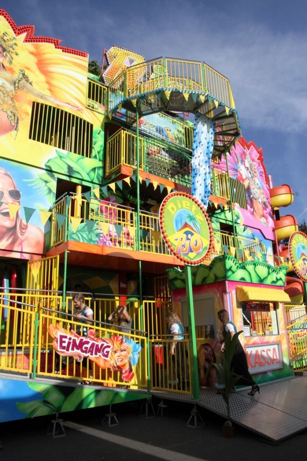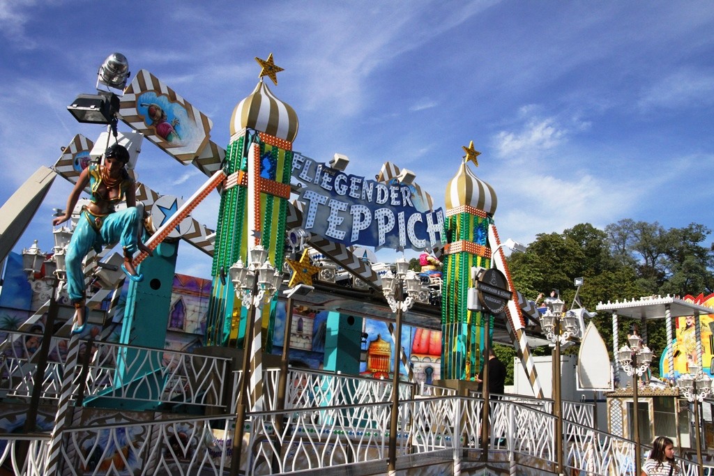 Gegen 19.00 Uhr zog man, allen voran der Fanfarenzug, in die Eiswein – Halle, die wie bereits angekündigt, völlig neu ausgerichtet ist. Festwirt HAPE Küffner lässt sich immer etwas neues einfallen. Ebenso sorgt der Chef des Vergnügungsparks Willi Lowinger immer wieder für eine Überraschung in den Fahrgeschäften, dieses Jahr ein „Fliegender Teppich“!
