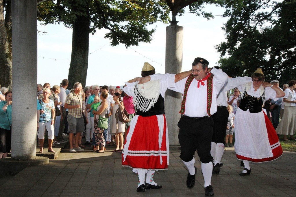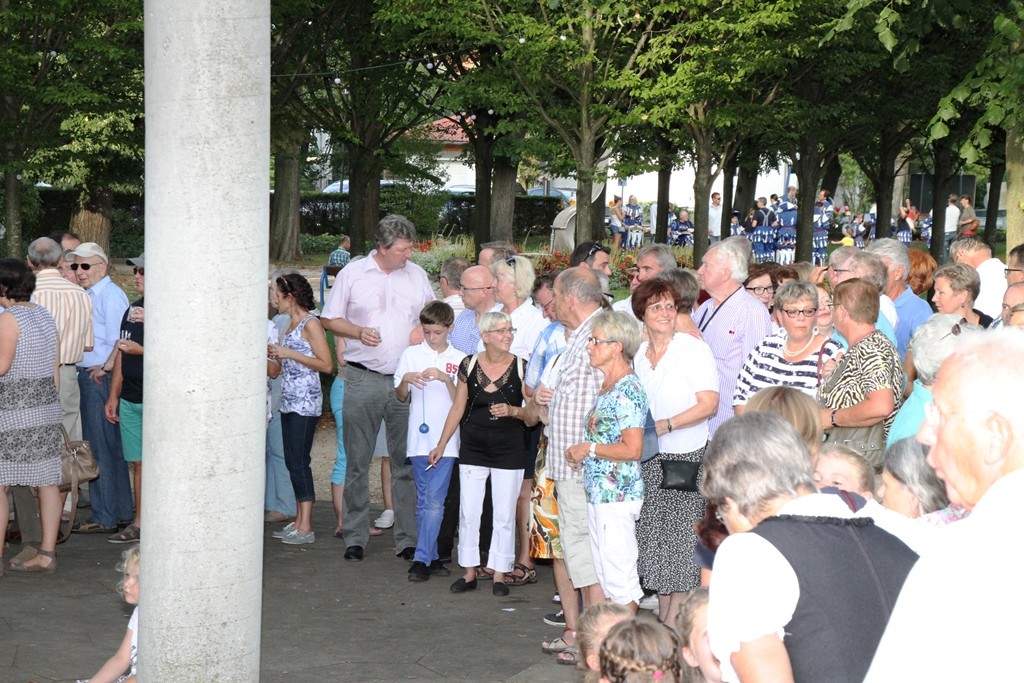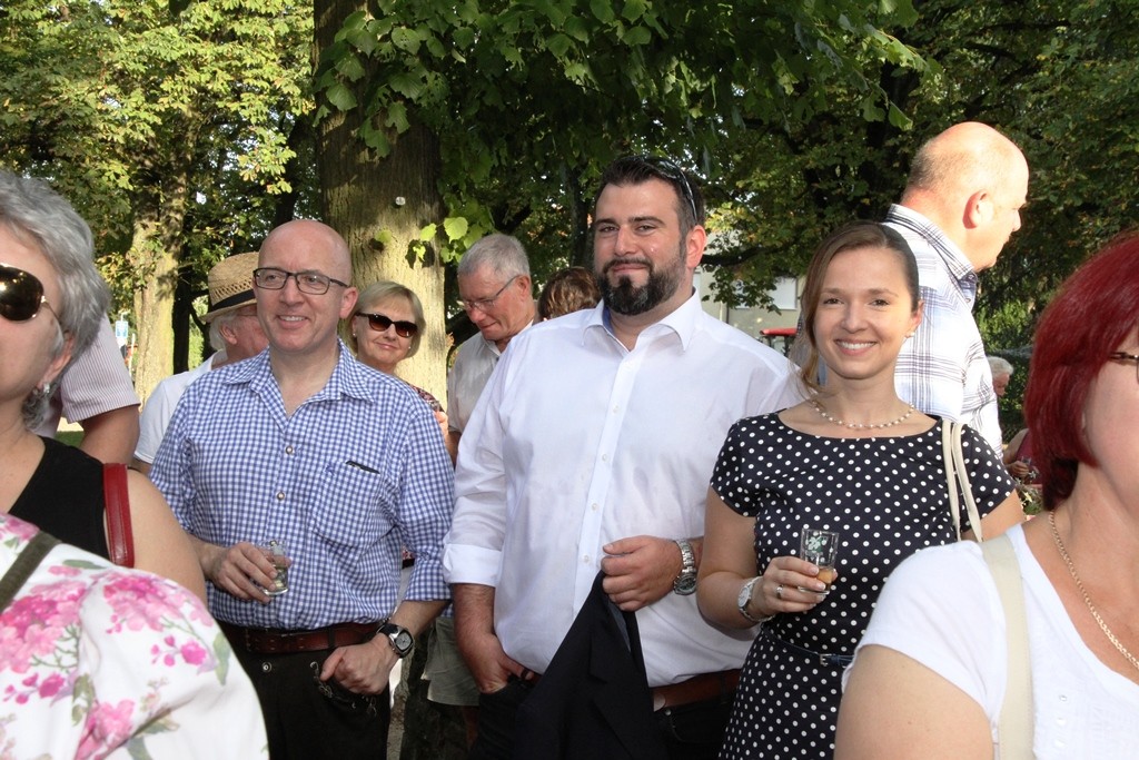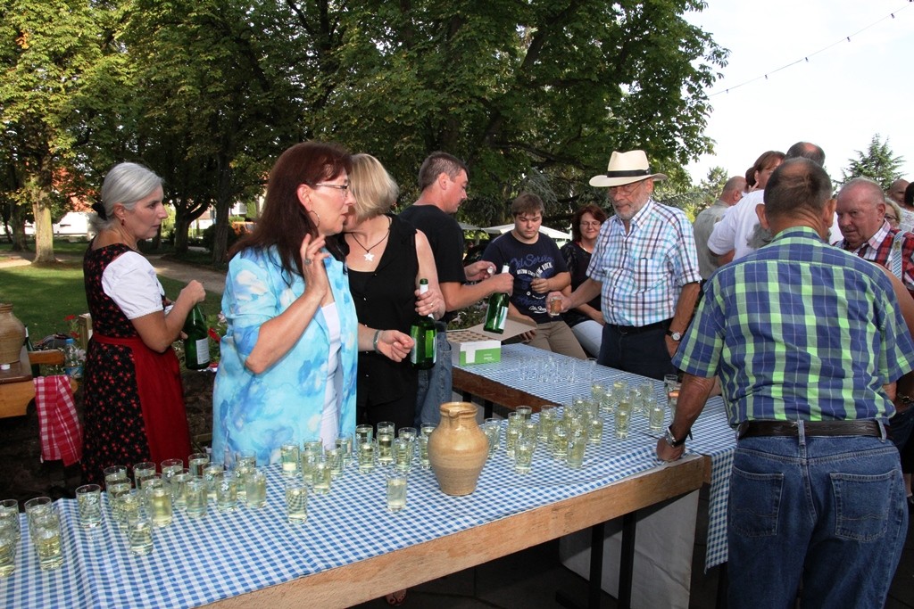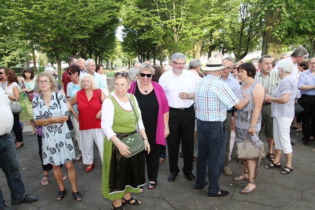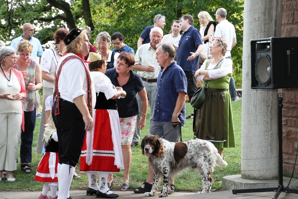 (red) Sehnsüchtig erwartet – die offizielle Eröffnung des Winzerfestes 2015 – heute war es soweit. Mit einem Rundgang der amtierenden Weinhoheiten und geladenen Gästen des Oberbürgermeister Franz Schaidhammer, daran anschliessend im Gerbersruh-Park die feierliche Eröffnung mit einem kleinen Umtrunk des köstlichen Weins des Winzerkeller, einer kurzen Ansprache der Weinkönigin sowie OB Schaidhammer wurde das Winzerfest eröffnet. Natürlich durfte die obligatorische Darbietung der Volkstanzgruppe nicht fehlen, welche die anwesenden Gäste, ich denke so ca. 300 kleine und große Anhänger des Weinfestes werden wohl vor Ort gewesen sein, mit ihren anstrengenden und schweißtreibenden Reigen erfreuten. Ich habe so einige Male gehört, dass wohl Wasser mehr verköstigt werden wird als Wein, dabei hob man sicher auf die Temperaturen ab, die sich wieder jenseits der 30 Grad Marke bewegten.