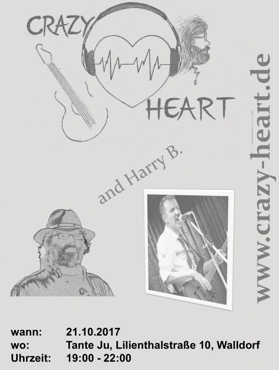 am 21.10 ab 19:00 spielt „Crazy-Heart and Harry B.“ im Tante Ju in  Walldorf in der Lilienthalstraße 10.