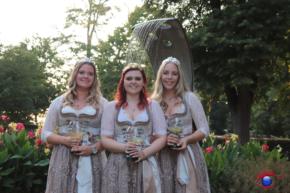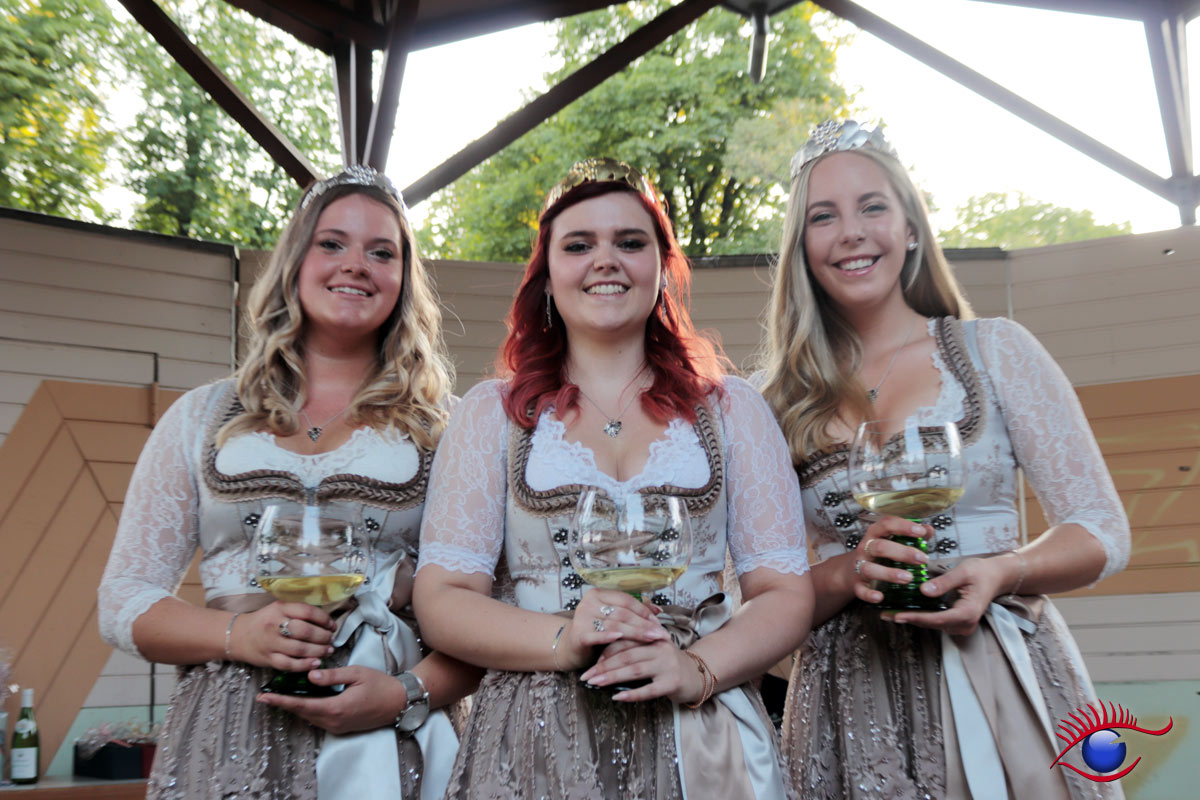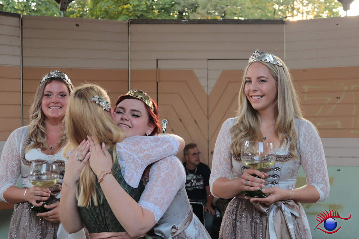 (rp) Wiesloch, 26.08.2019 – Emotionaler Abschied der bisherigen Weinhoheiten mit Tränen in den Augen. Weinkönigin Mona I. und die beiden Weinprinzessinnen Verena Kenz und Verena Rieger wurden entthront.