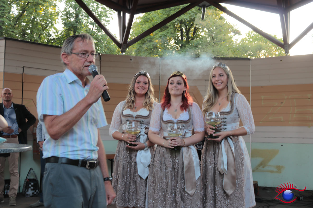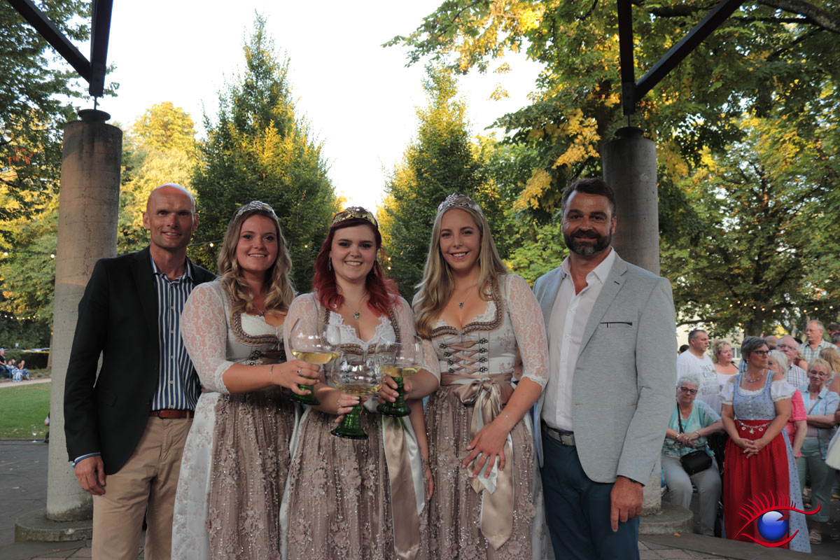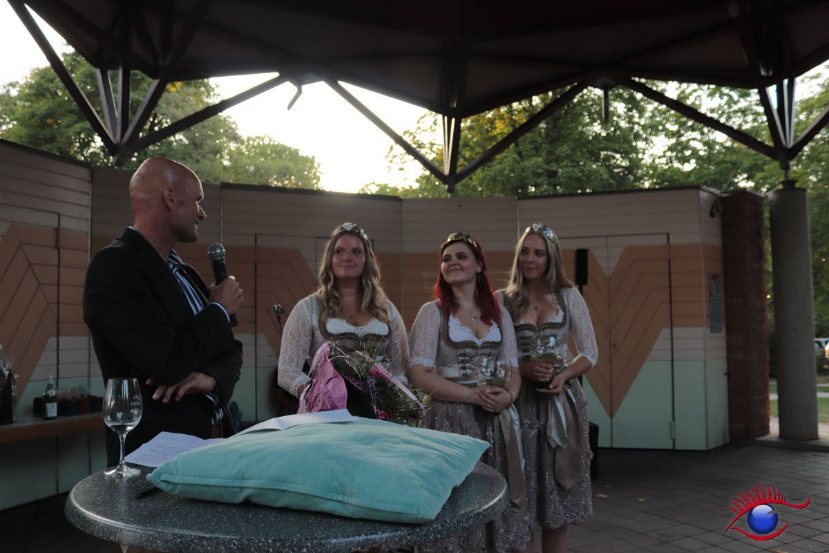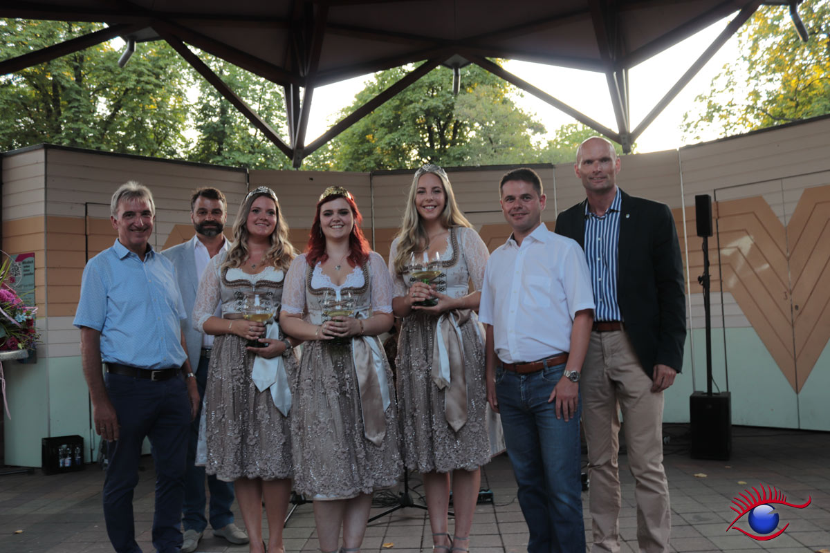 (rp) Wiesloch, 26.08.2019 – Emotionaler Abschied der bisherigen Weinhoheiten mit Tränen in den Augen. Weinkönigin Mona I. und die beiden Weinprinzessinnen Verena Kenz und Verena Rieger wurden entthront.
