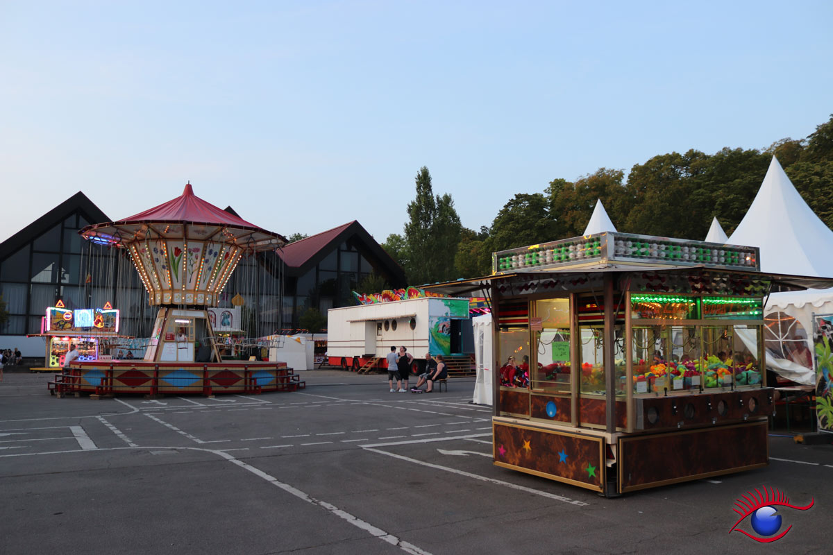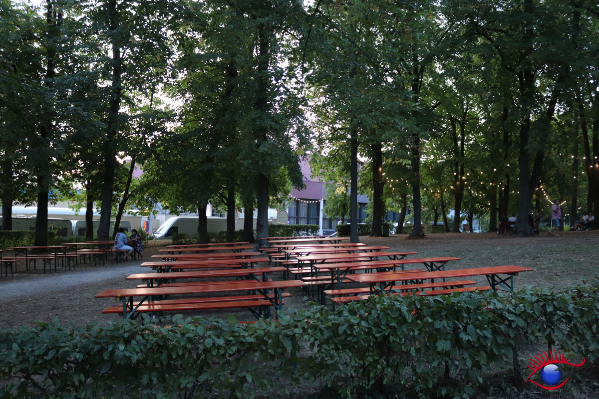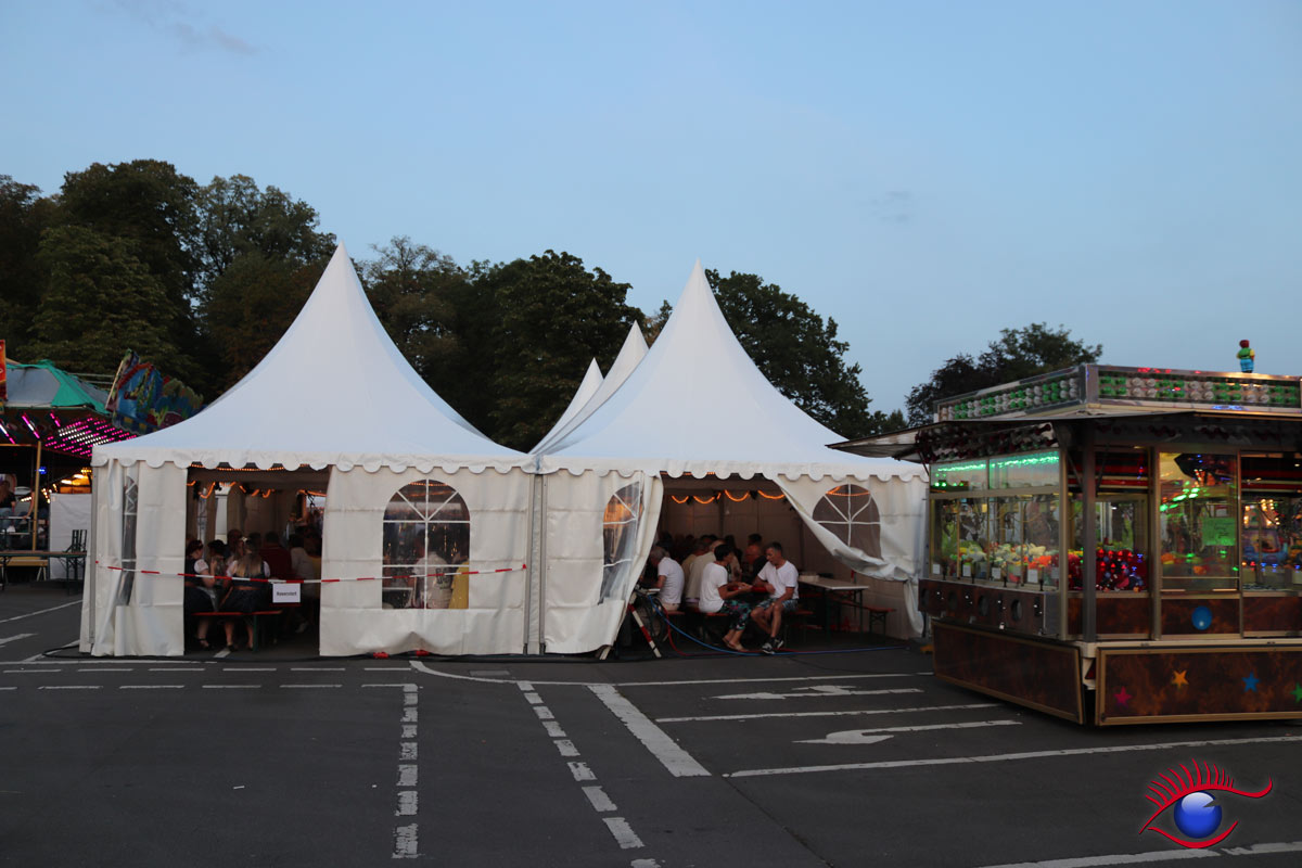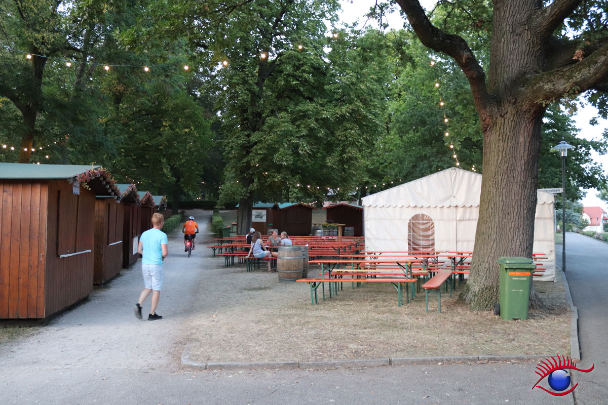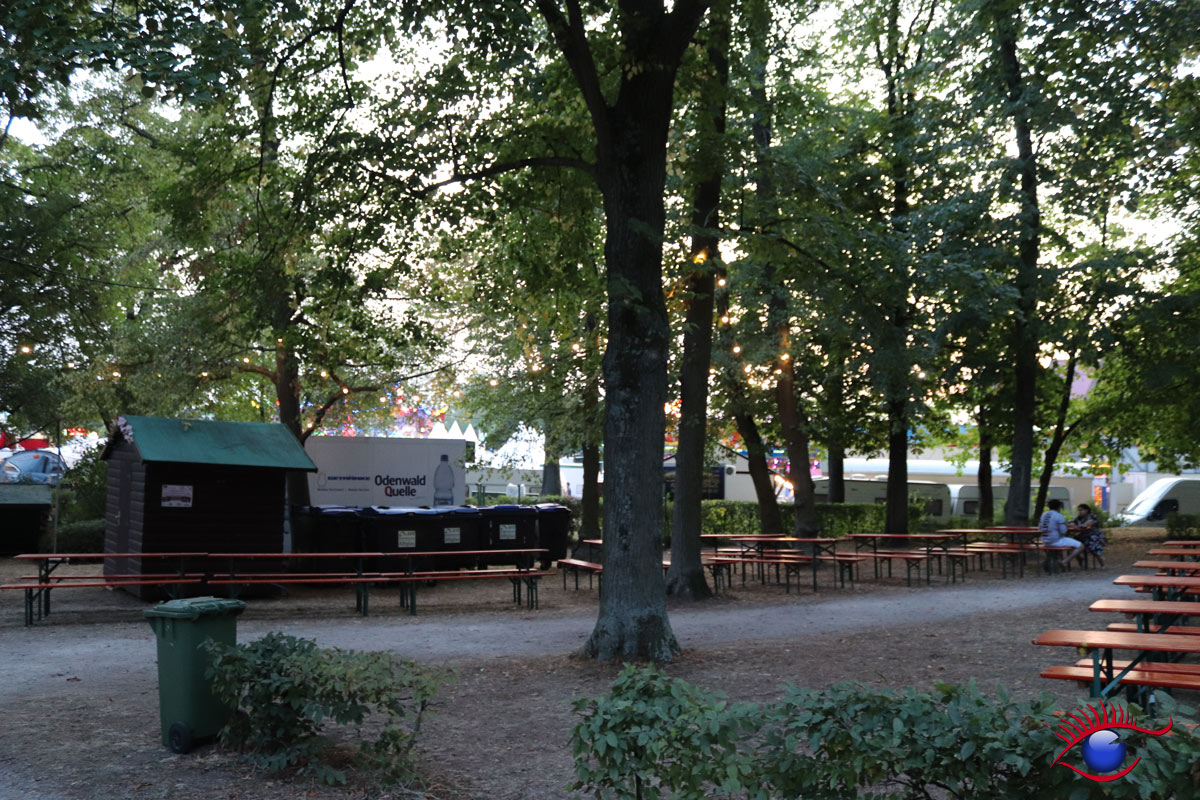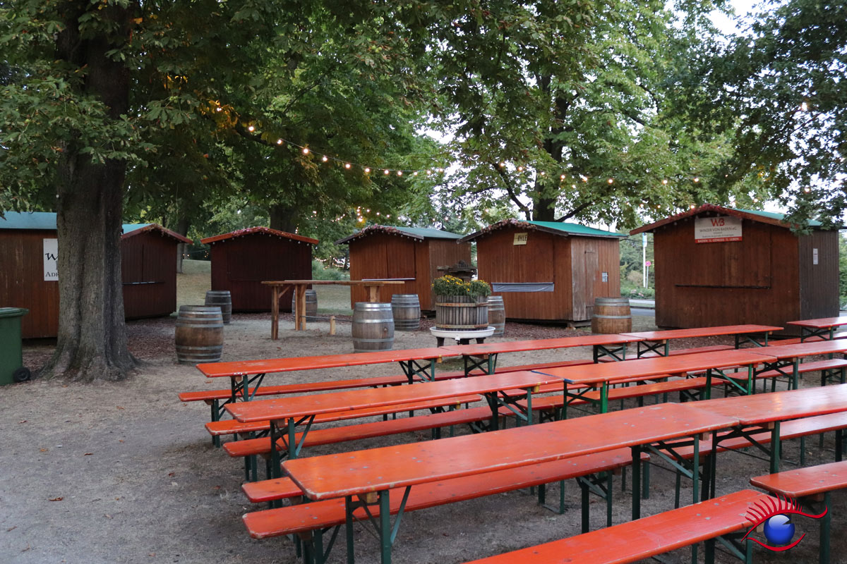Sitzplätze auf dem Festplatz sind dieses Jahr Mangelware. Während im benachbarten Gerbersruhpark gähnende Leere herrschte, da das Weindorf unter der Woche geschlossen ist.