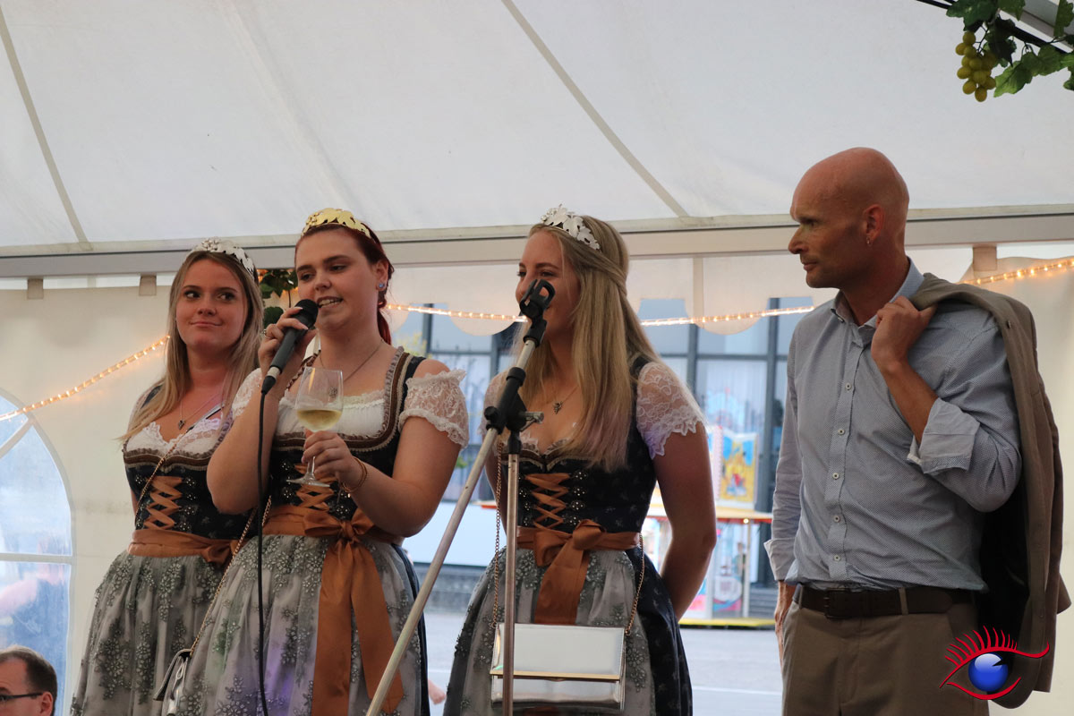 Freundlich Empfangen wurden die Besucher zunächst von den drei Weinhoheiten mit einem Begrüßungstrunk.