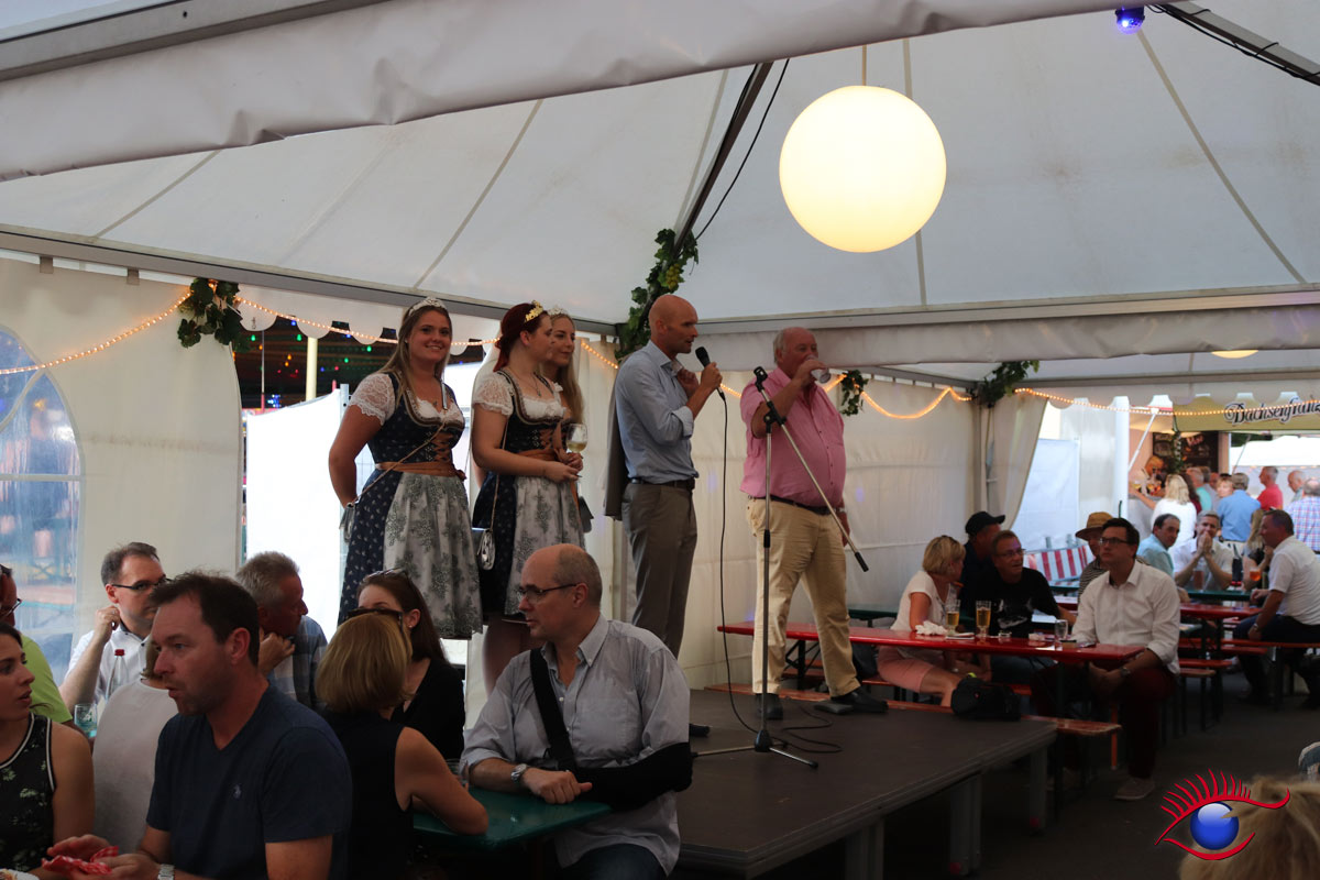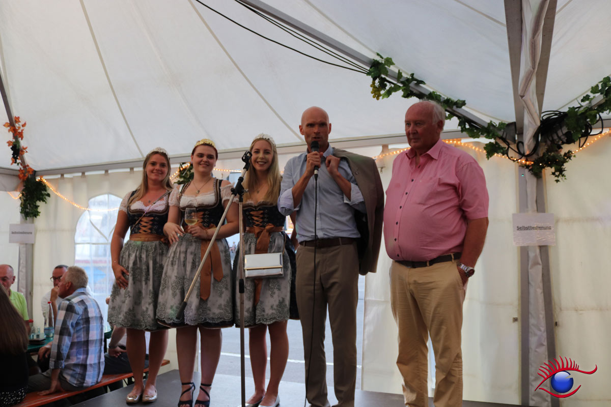 Oberbürgermeister Elkemann sowie Festplatzchef Willi Lowinger begrüßten die Gäste im kleinen Pavillon der sog. Weinlaube. Für die große Kreisstadt Wiesloch standen diese auf einer recht kleinen Bühne.