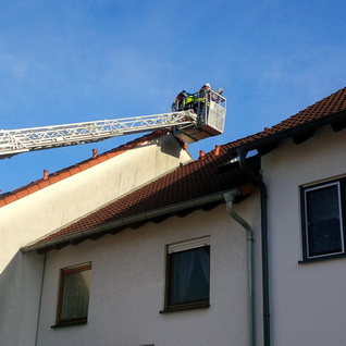 Neben der Abteilungsfeuerwehr Baiertal rückten weitere Kräfte der Abteilung Wiesloch mit Sonderfahrzeugen an die Einsatzstelle aus. Vor Ort verschafften sich die Helfer über tragbare Leitern und die Drehleiter von zwei Seiten aus Zugang zu dem Dachbereich.