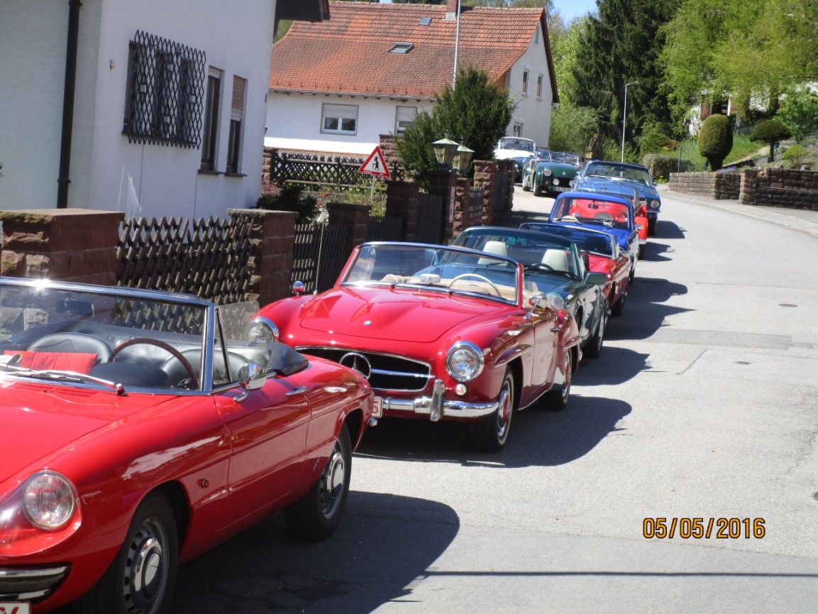Was gibt es an Vatertag schöneres für die Männer als ihrem Lieblingshobby bei optimalen Bedingungen zu frönen? So waren morgen um 09:30 Uhr 45 motivierte Oldiefreunde, 23 alte Autos plus ein Motorradfahrer bereit zur ersten Saisonausfahrt der FhF Wiesloch. Zu Beginn war es noch ganz schön zugig, es ging schließlich in den hessischen Odenwald.