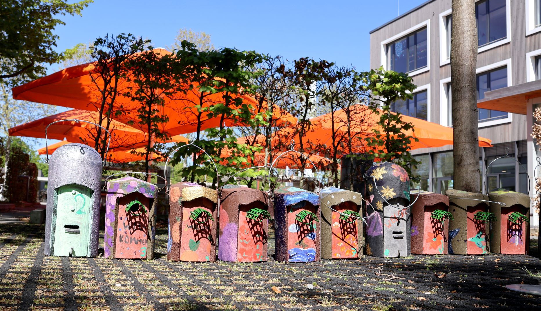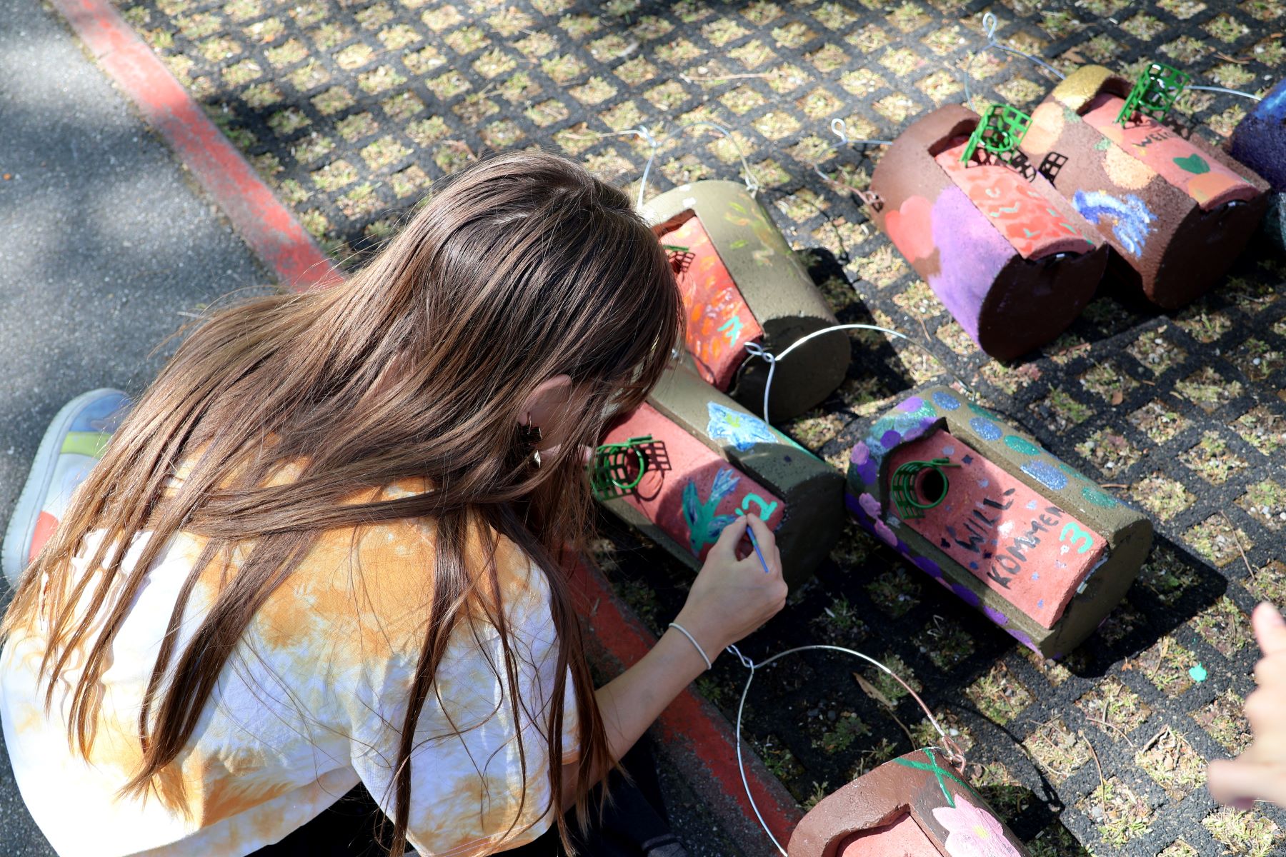 Die Umwelt AG des Walldorfer Gymnasiums hat gute Arbeit geleistet – da sind sich alle einig. Die Kinder und Jugendlichen haben die 14 Nisthilfen für Vögel und Fledermäuse während der AG-Zeit liebevoll und kreativ bemalt. Etwa zehn Schülerinnen und Schüler ab der siebten Klasse engagieren sich regelmäßig in der Arbeitsgemeinschaft, die von der Lehrerin Jasmin Wunderlich geleitet wird.