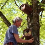 Gemeinsam mit den anderen Beteiligten suchen Klemm und Högerich geeignete Bäume aus und hängen die Nistkästen in mehreren Metern Höhe und mit der Öffnung nach Südosten gerichtet auf. „Das passt gut in die Einflugschneise der Vögel“, erläutert Reiner Klemm. Außerdem würden die Nistkästen so nicht zu wenig, aber auch nicht zu viel Sonne abbekommen. Reiner Klemm und Wolfgang Högerich kennen sich mit guten Standorten für die Kästen aus: Der NABU betreut allein in Walldorf etwa 140 davon, alle ein bis zwei Jahre werden sie gereinigt. Die neuen Exemplare auf dem Schulhof sind jedenfalls bezugsfertig und warten auf die ersten gefiederten Bewohner.