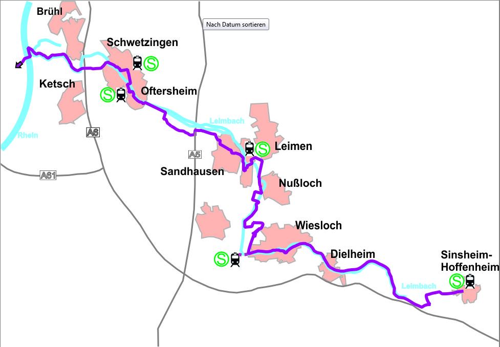Die „Leimbachroute“ ist ein interkommunales Freizeit- und Tourismusprojekt der Gemeinden Sinsheim, Dielheim, Wiesloch, Nußloch, Leimen, Sandhausen, Oftersheim, Schwetzingen, Ketsch und Brühl gemeinsam mit dem Nachbarschaftsverband Heidelberg-Mannheim (Projektkoordinator).
