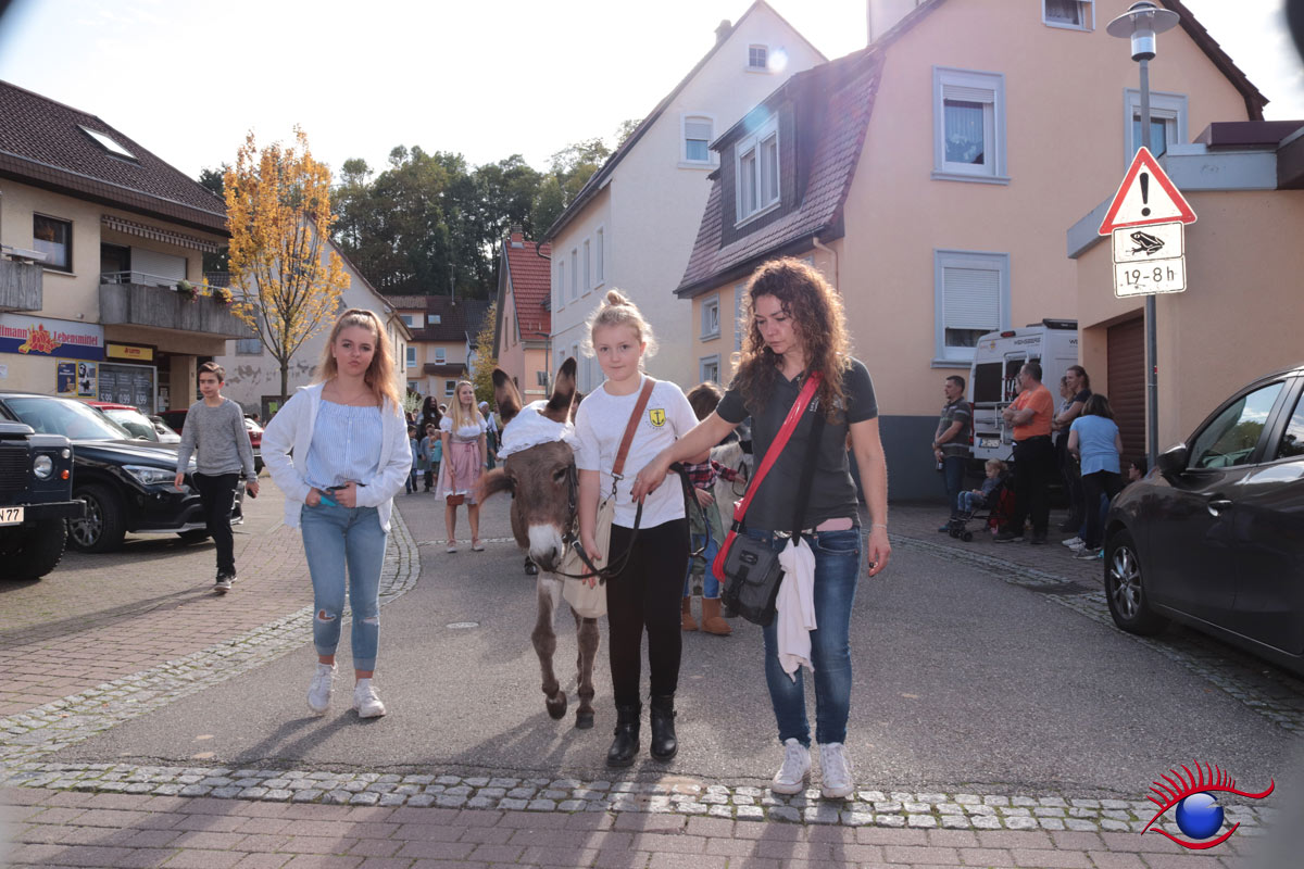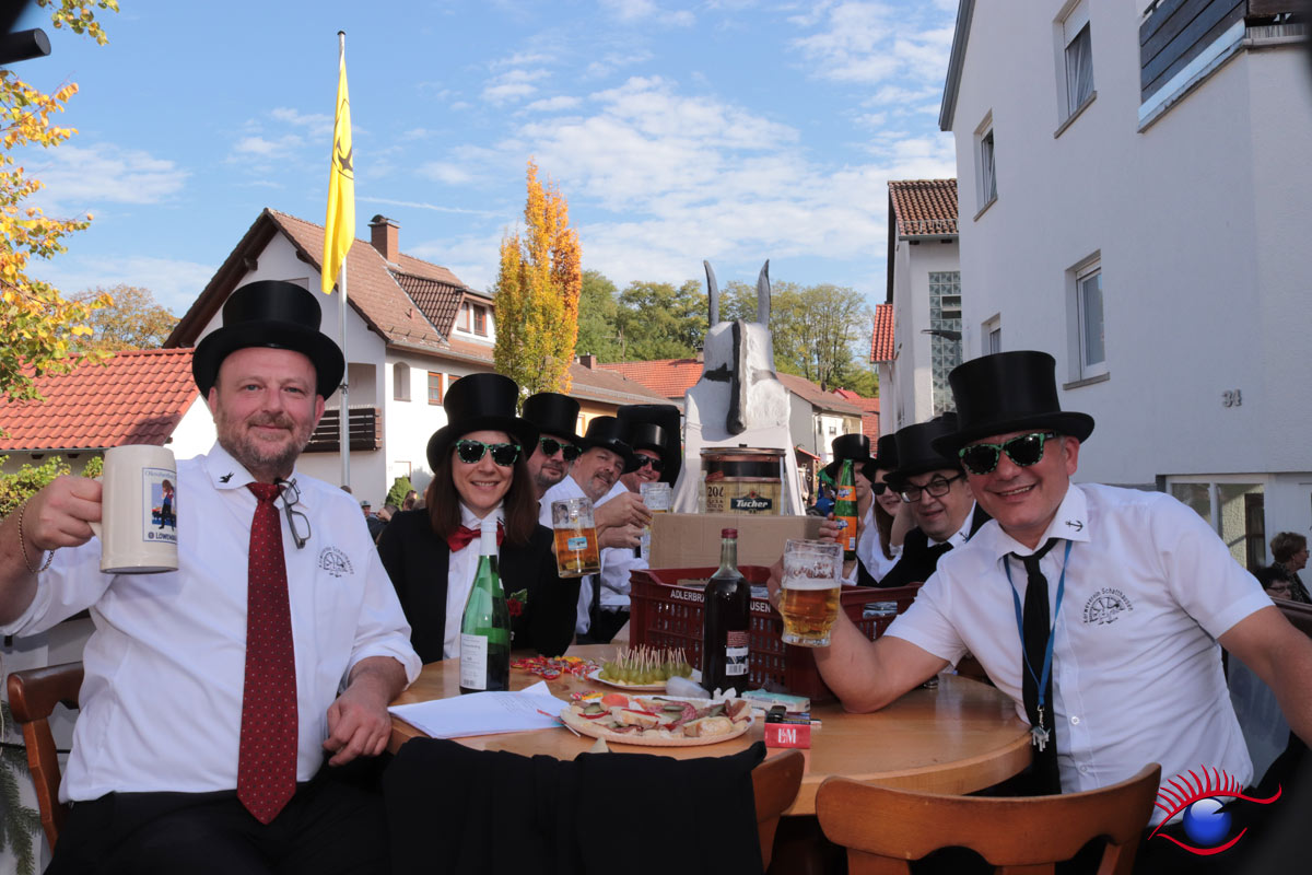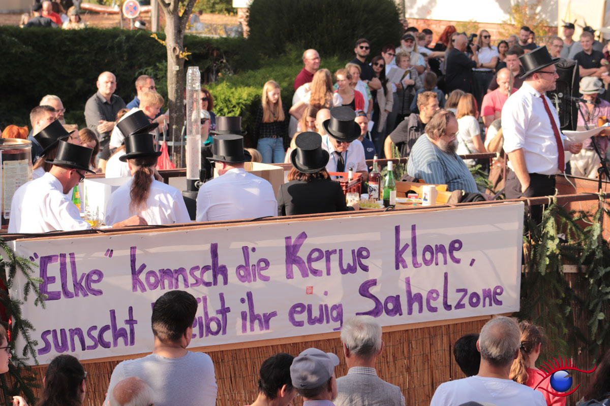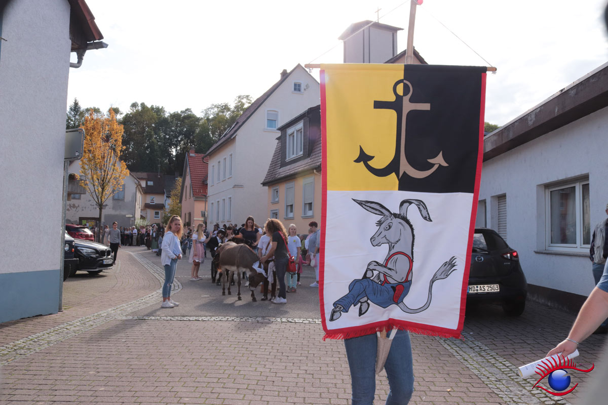 Lobende und sehr freundliche Worte gingen an Altwiesloch, denen für die Gastfreundschaft bei der kleinen Altwieslocher Birekuche-Kerwe gedankt wurde. Die Altwieslocher Kerweborschde feierten ordentlich mit den Eseln mit.
