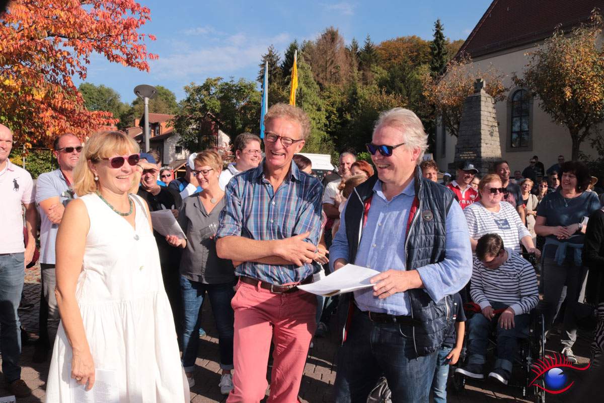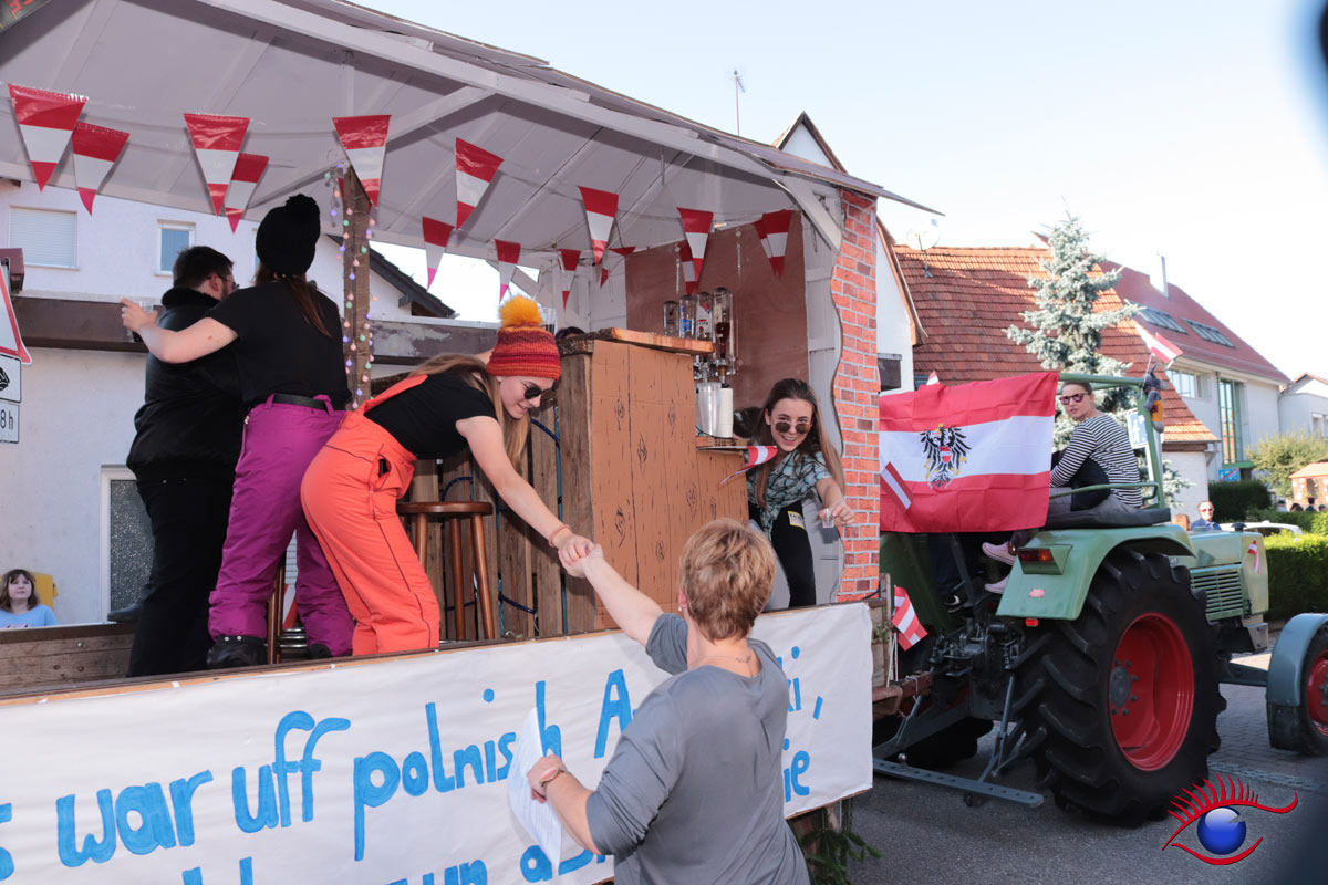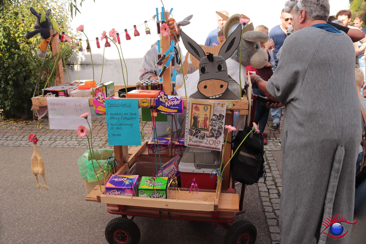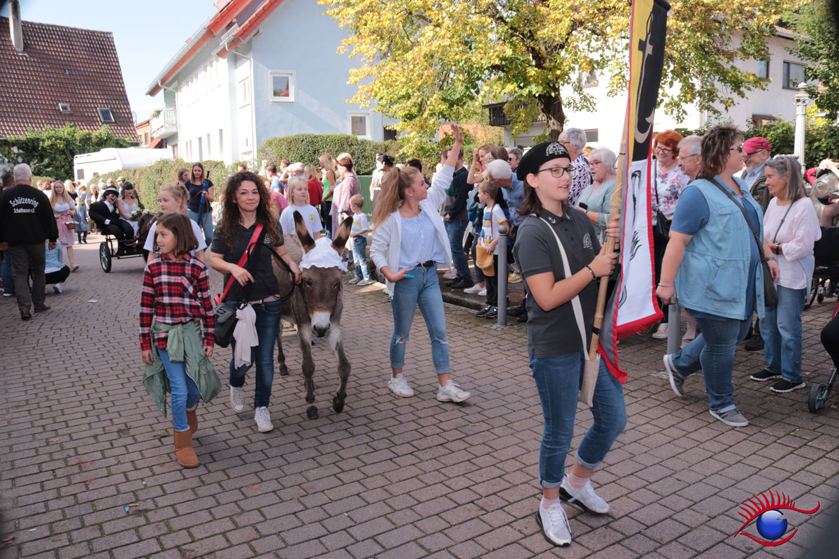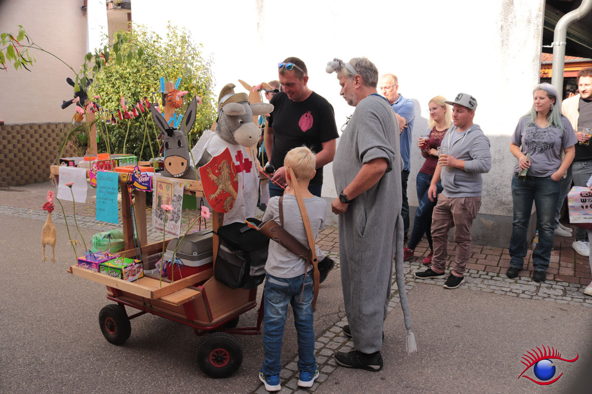 Lobende und sehr freundliche Worte gingen an Altwiesloch, denen für die Gastfreundschaft bei der kleinen Altwieslocher Birekuche-Kerwe gedankt wurde. Die Altwieslocher Kerweborschde feierten ordentlich mit den Eseln mit.