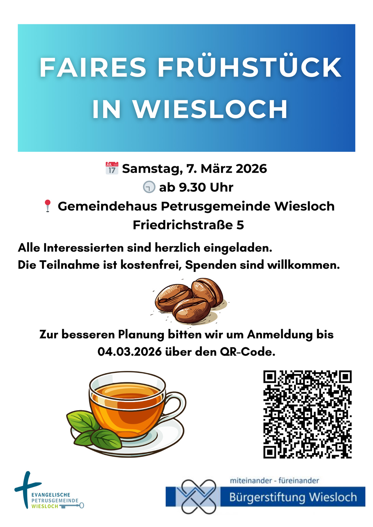 Faires Frühstück am 07. März 2026 in Wiesloch. Die Anmeldefrist wurde bis zum 06. März 2026 verlängert.
