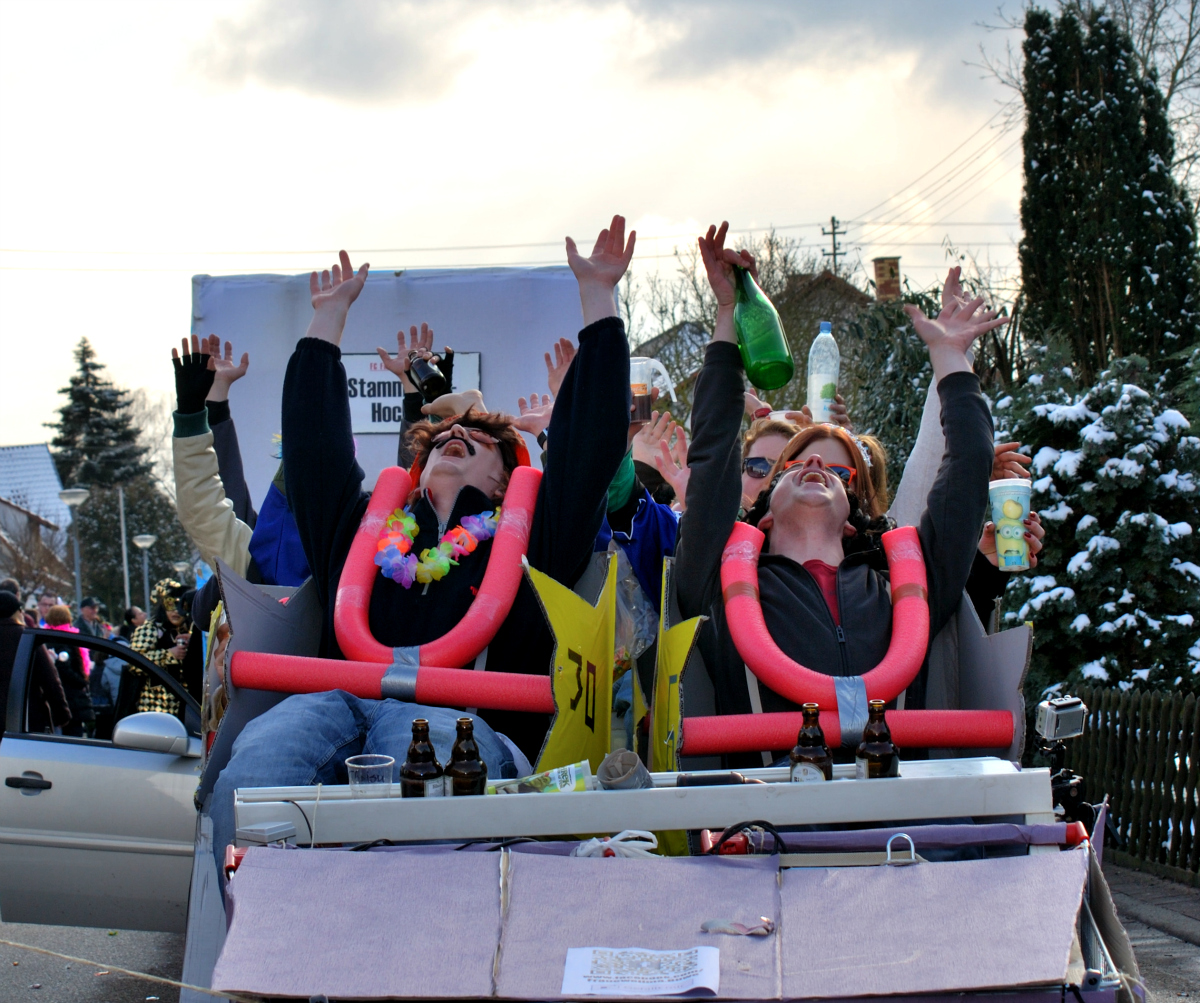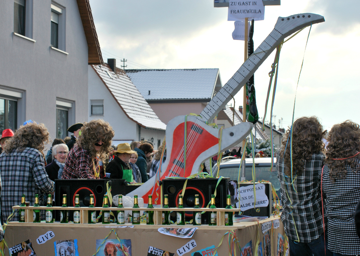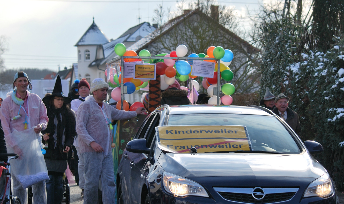 (nl) Pünktlich um 14.11 Uhr begann auch in diesem Jahr wieder der Faschingsumzug in Wiesloch-Frauenweiler. Die 13 schön gestalteten Wagen wurden von zahlreichen, gut gelaunten Zuschauern, welche vom Kleinkind bis zum Rentner alles umspannten, am Straßenrand bewundert und bejubelt. Hatte es tags zuvor noch stark geschneit, so war jetzt glücklicherweise zum Start des Umzugs das Wetter trocken über kurze Zeit sogar sonnig und so begann der Umzug unter besten Voraussetzungen.