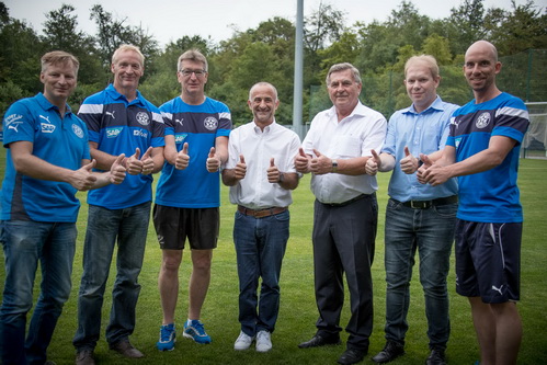 FC Astoria Walldorf_abat_Sponsoring_2Das gab abat-Vorstand Peter Grendel bei der Einweihung des neuen Dietmar-Hopp-Sportparks bekannt. abat unterstützt den Verein bereits seit einem Jahr. Aktuell befindet sich die Mannschaft in der heißen Phase der Vorbereitung auf den DFB-Pokal: Im ersten Spiel der Hauptrunde trifft der FC-Astoria am 21. August auf den VfL Bochum.