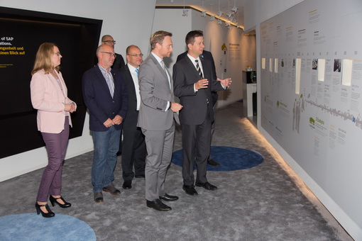 Luka Mucic, Finanzvorstand der SAP, empfing Christian Lindner und die Delegation im Inspiration Pavillon, der den technischen Fortschritt seit 1972 eindrucksvoll präsentiert. Insbesondere die Rolle der SAP, die hier bei jeder großen technischen Revolution die Chance ergriff, sich an die Spitze des Fortschritts zu setzen und so zum weltgrößten Softwarekonzern für Unternehmenssoftware zu werden.
