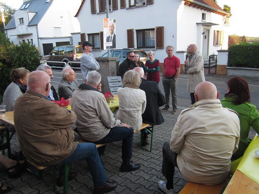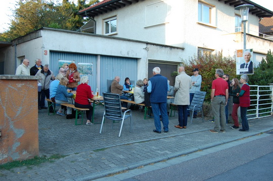 Begünstigt von der herrlichen Herbstsonne trafen sich Nachbarn und Interessenten zu einer lockeren Gesprächsrunde. Nach einer kurzen Vorstellung stand Dirk Elkemann sowohl in großer Runde, in der in erster Linie Verkehrsthemen und Wirtschaftsfragen diskutiert wurden, als auch in Einzelgesprächen Rede und Antwort, wobei er als guter Zuhörer und sachkundiger Fachmann überzeugte.