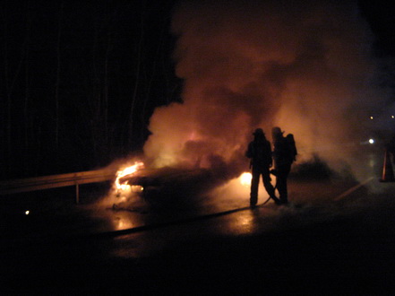 Am Ende des Einsatzes wurde das ausgebrannte Fahrzeugwrack mit der Wärmebildkamera kontrolliert und die Einsatzstelle konnte der Autobahnpolizei übergeben werden.