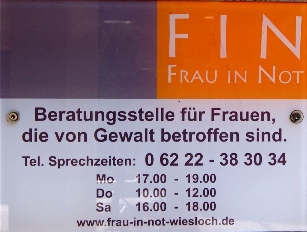 Frauen, die in Not sind und FIN in Wiesloch nicht erreichen, können sich auch an den Frauen Notruf nach Heidelberg wenden (06221 183643).