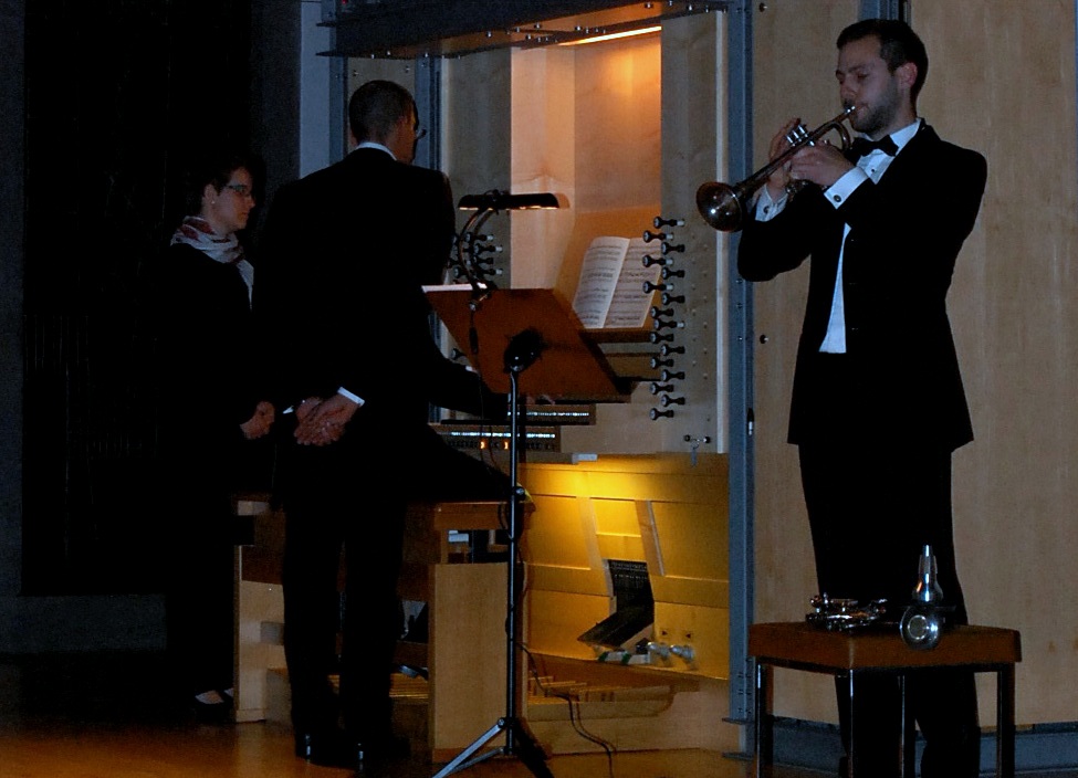 Königin der Instrumente – die Orgel – wurde von Stephan Rahn gespielt. Die wunderbare Göckel-Orgel der Katholischen Kirche St. Peter war wie dafür geschaffen. Die Musiker präsentierten eine repräsentative Auswahl an geeigneten Werken für die zwei Instrumente, dabei mussten sie auch auf normalerweise Orchesterbegleitende Werke zurückgreifen, um das Duo der Instrumente zu präsentieren.