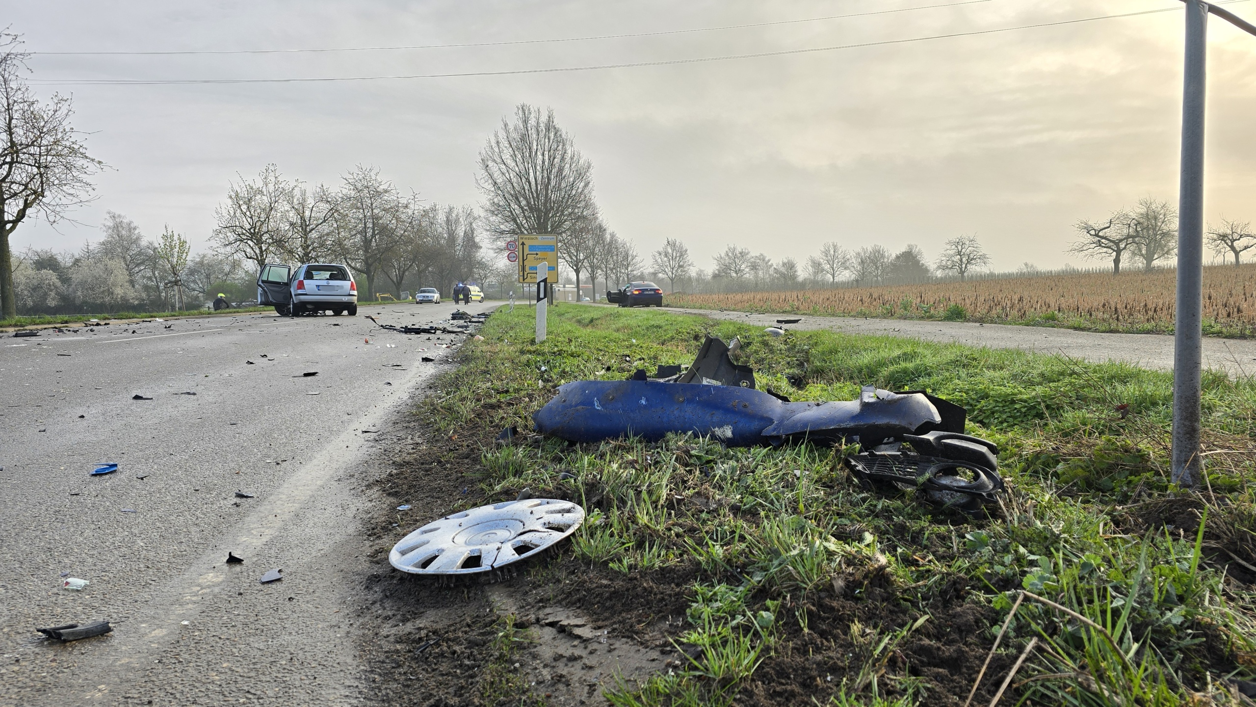 Am Dienstagmorgen ereignete sich ein Frontalzusammenstoß auf der L594 zwischen der Südtangente Wiesloch und Frauenweiler, wie die Polizei Mannheim mitteilt.