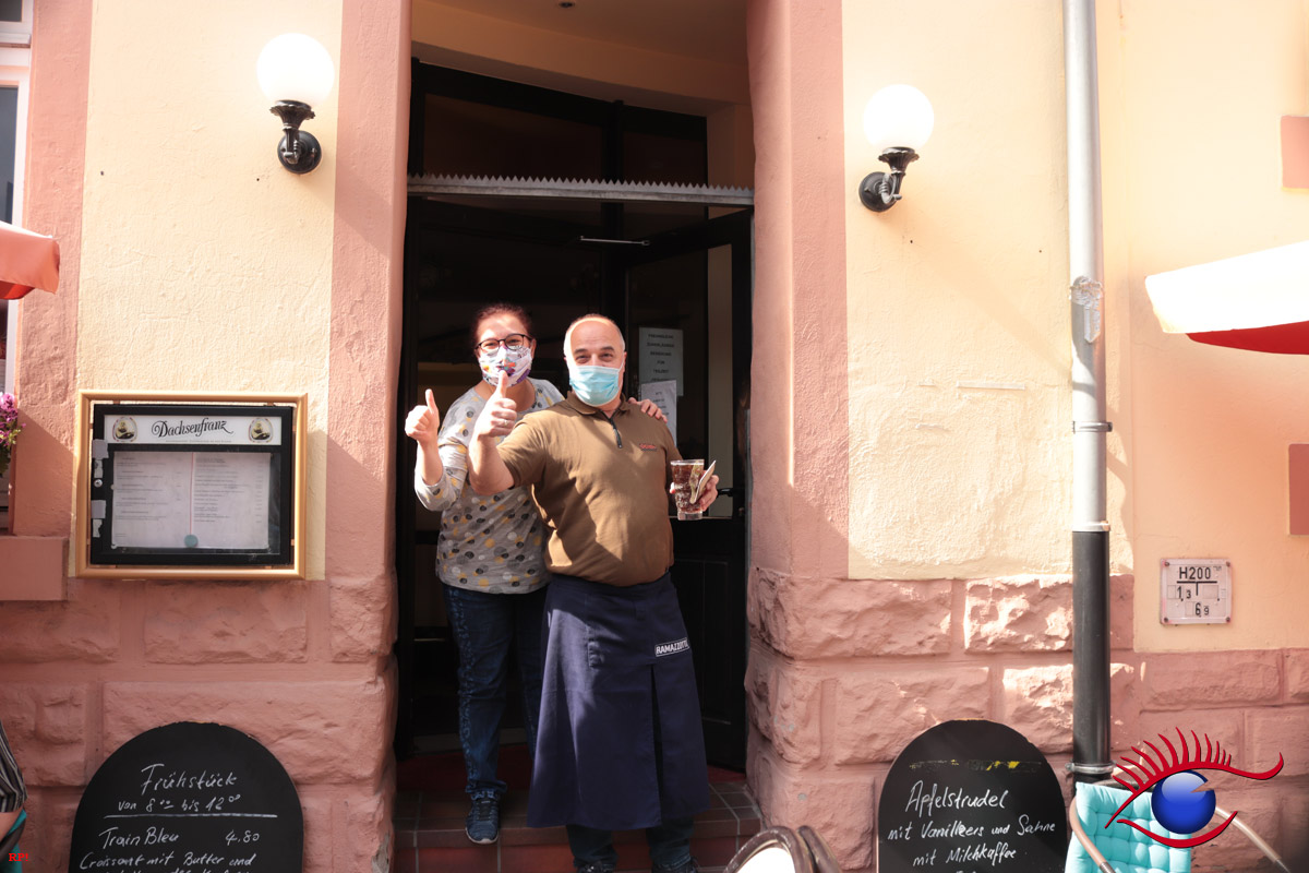 (rp) Wiesloch und Region, 21.05.2020 – Daumen hoch, beide Daumen hoch – Endlich wieder offen, endlich wieder Bewirtung von Gästen im Restaurant oder dem Eiscafé.