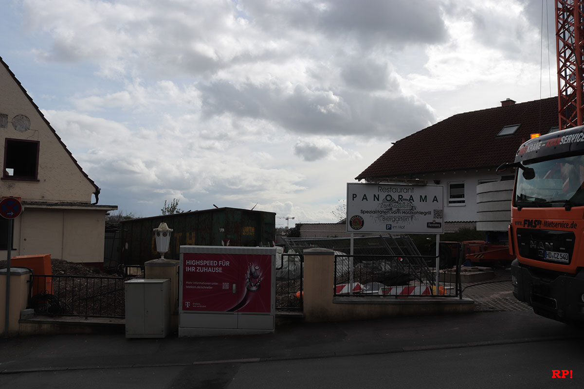 Das Restaurant Panorama ,,Zur Aussicht“ Wiesloch ist nun Geschichte. Der Abbruch hat begonnen.