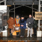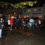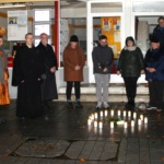 Mit Texten wie diesem erinnert der Verein Walldorf solidarisch auf dem Marktplatz gemeinsam mit mehr als fünfzig Zuhörerinnen und Zuhörern am 85. Jahrestag der Deportation an das schreckliche Geschehen, das sich nicht wiederholen soll. „Stellen wir uns vor, ein Überlebender wäre heute hier. Was würde er denken? Was würde er sagen, wenn er auf uns blickt?“, heißt es gegen Ende der szenischen Lesung, als die Organisatoren an den Stolpersteinen Rosen niedergelegt und einen Kreis aus Kerzen gebildet haben. „Ganz sicher würde er sagen: Euch trifft keine Schuld! Ihr könnt nichts für das, was damals geschehen ist. Aber ihr seid schuld, wenn es wieder passiert“, geben sie selbst die Antwort und Mahnung. Trotz Dauerregen haben alle Teilnehmer – unter ihnen auch Bürgermeister Matthias Renschler und der Erste Beigeordnete Otto Steinmann – ausgeharrt, haben die auch nach 85 Jahren immer noch betroffen machenden Texte auf sich wirken lassen und der zwischendurch eingespielten, dazu passenden Musik gelauscht.