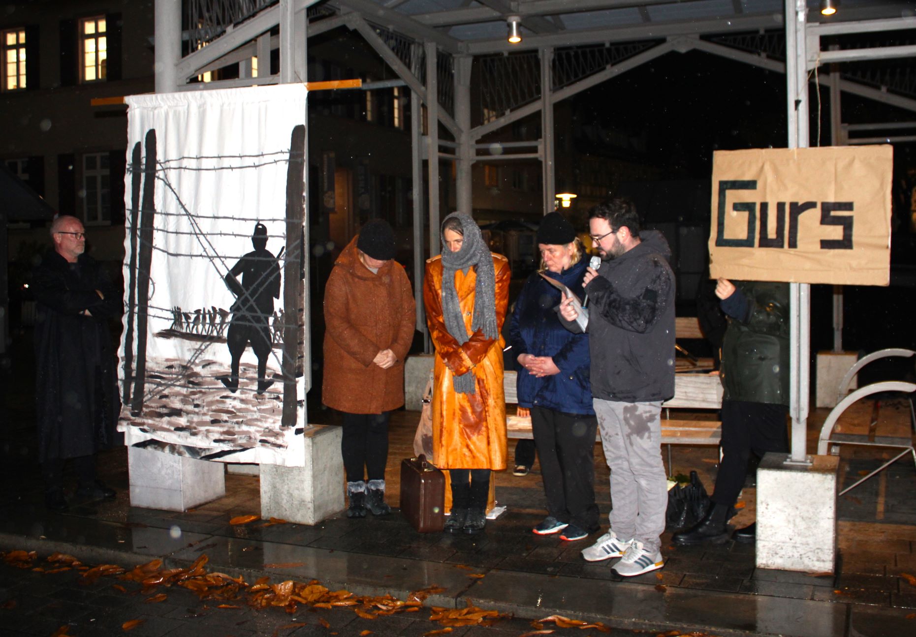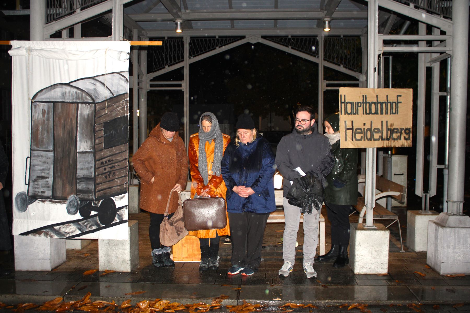 „Bei der Sonderaktion am 22. Oktober 1940 wurden in Walldorf insgesamt 19 Juden unter Mitwirkung der Gemeindeschutzpolizei Walldorf, Rot, St. Leon und Leimen und mit vier Mann der Polizeireserve II festgenommen“, zitiert zu Beginn des Gedenkens eine Stimme vom Band die damalige Meldung des Gendarmeriepostens Walldorf. Melanie Herrmann gibt als Erzählerin den Hintergrund: „Am 22. Oktober 1940 wurden in einer sorgfältig geplanten, geheimen und überraschend durchgeführten Aktion der Gestapo und Polizei die rund 6500 Juden, die noch in Baden, der Pfalz und dem Saarland lebten, in das damals noch unbesetzte Vichy-Frankreich deportiert. Darunter waren 218 aus Heidelberg, 114 aus den Gemeinden des Landkreises und die letzten 19 Walldorfer Juden. Die Gauleiter von Baden und der Saarpfalz, Robert Wagner und Joseph Bürkel, wollten damit ihre Gaue als erste ‚judenfrei‘ melden. Die Walldorfer Juden erfuhren erst unmittelbar vor ihrer Festnahme, am Tag des jüdischen Laubhüttenfestes Chanuka, von ihrer Ausweisung. Sie durften nur das Nötigste packen, 30 Kilogramm Gepäck und 100 Reichsmark.“ Pfarrer Dr. Uwe Boch, Daniel Rose und Maximilian Himberger lesen weitere Texte, Aktive aus dem Verein und dessen Umfeld unterstützen bei der szenischen Umsetzung.