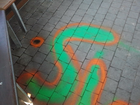 Der dabei entstandene Sachschaden wird auf rund 2.000 Euro geschätzt, wobei eine komplette Entfernung der Farbe gar nicht möglich sein wird, weil diese tief in die Steine und das Holz eingedrungen ist.