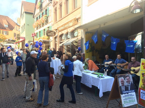 OB_Herbstmarkt_01 Bei schönstem Wetter besuchten viele Bürgerinnen und Bürger den diesjährigen Wieslocher Herbstmarkt in der Fußgängerzone. Mitten drin der Stand des OB-Kandidaten Dr. Kai Schmidt-Eisenlohr.